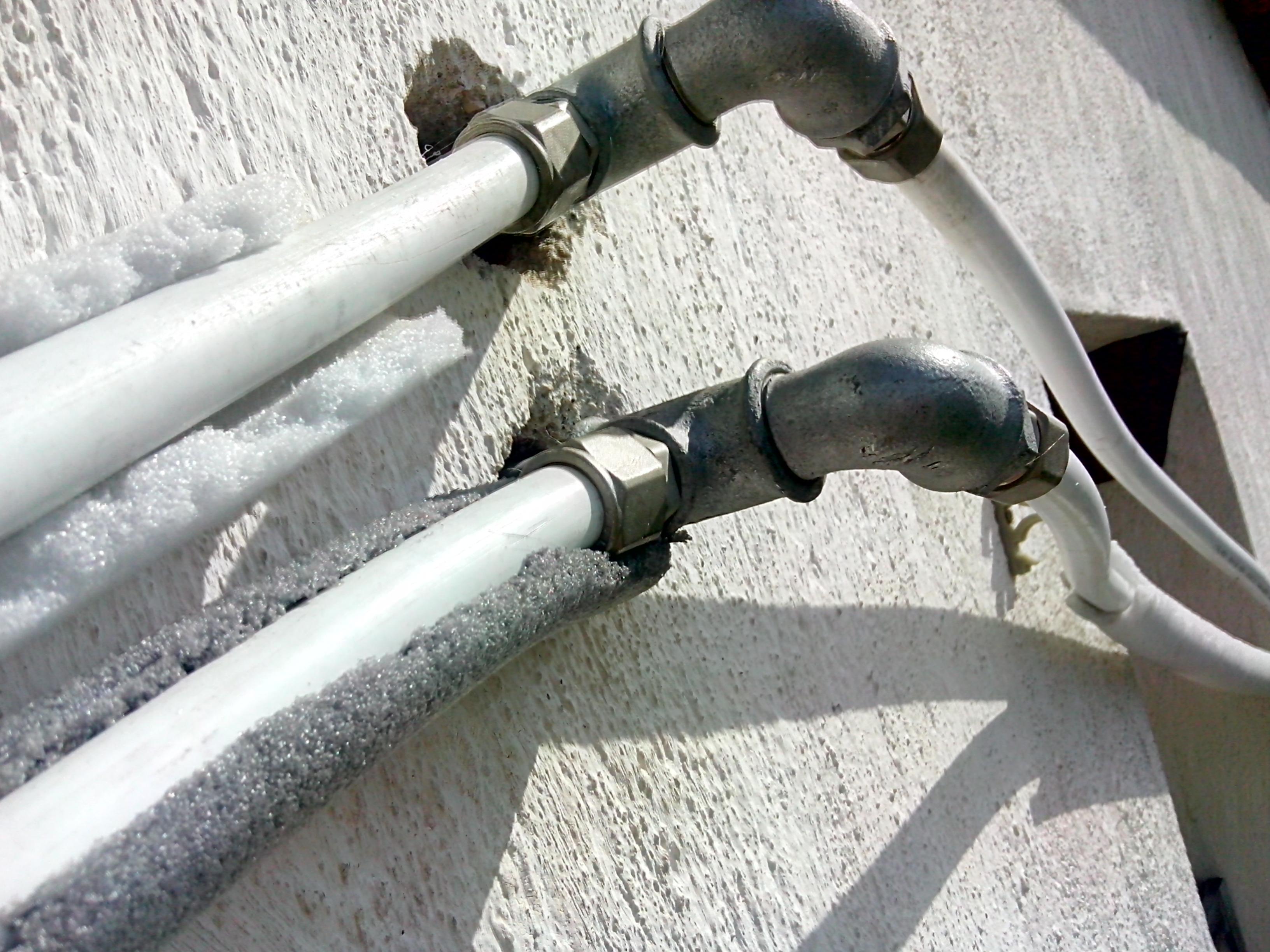 Сивата пласмасова изолация не става за открит монтаж - изгаря от слънцето. Може да я предпазиш с алуминиево тиксо. Друг по-евтин вариант е да събереш картона от кутии за сок - обърнат с вътрешната страна навън защитава идеално от слънцето.