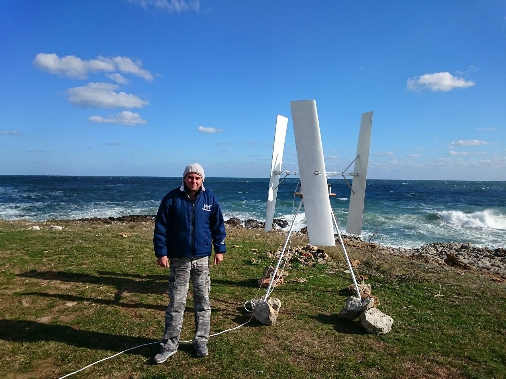 Турбината няма нищо общо с сайта които си дал всичко е домашна изработка. Диаметърът наистина е 1.20м но височината на крилата е 1.60м с профил NACA 0015 и тия 300w не са актуални.