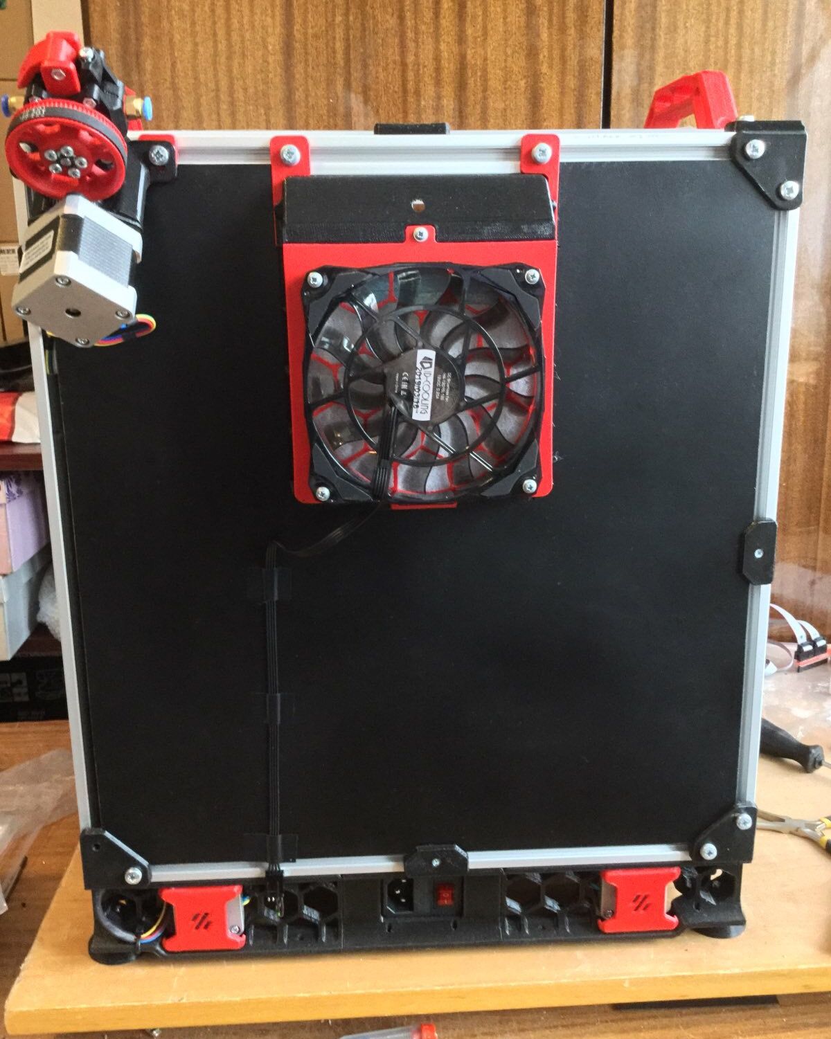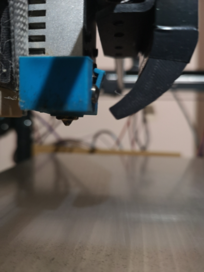 Що се отнася до обдухването, доста си поиграх докато докарам що годе читаво обдухване. Не исках струята въздух да пада директно върху дюзата, за да не я охлажда, а почти в края там където се топи филамента.