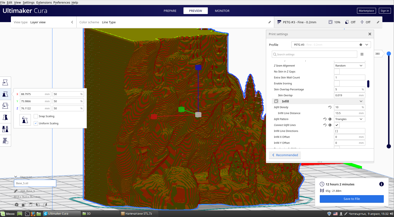 Разреших си проблема,….за слайдер използвам Simplify3d и когато съм подготвял 3D обетка за принтиране,…съм забравил да центрирам обекта в средата на леглото,…така е когато се бърза:}