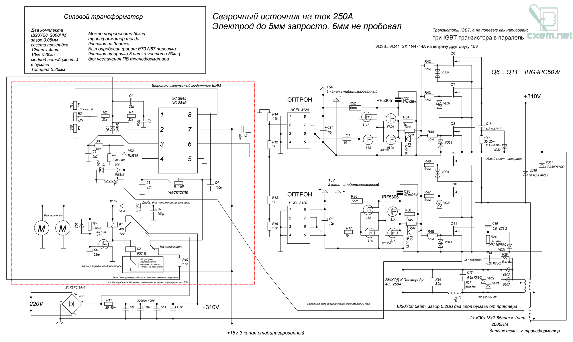 Здравейте , и аз като всички вас си бутам главата с направа на инверторни електрожени. Направих един по схемата на Бармалей , тръгна с малко главоболия. Захванал съм една схема с 6 IGBT транзистора . Намерих ферити E100 3C90 и мисля трафа да го правя с тях. Кажете мнение за мойта идея
