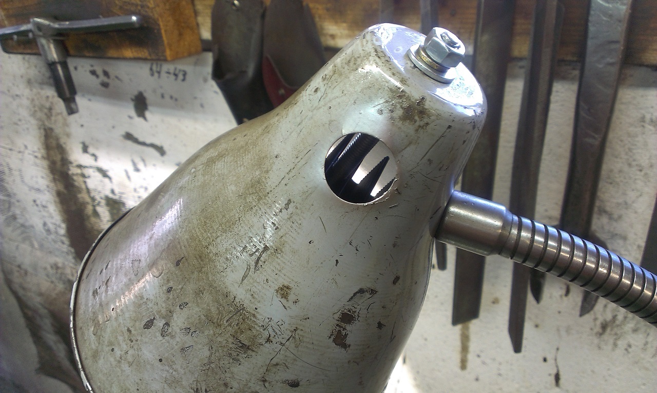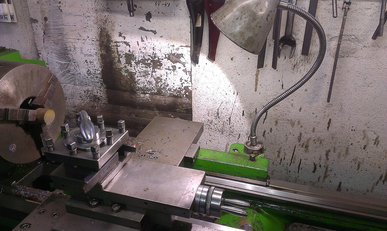 Ето и обещаните снимки на Cree-то, монтирано на радиатора вътре в осветителното тяло на струга. Драйвера е монтиран във фабричната кутия на струга, точно под основата на лампата, за да е максимално близо до самия диод! Свети чудесно. За около час време се нагрява: радиатора-57*, диода стига до 65-70 градуса.