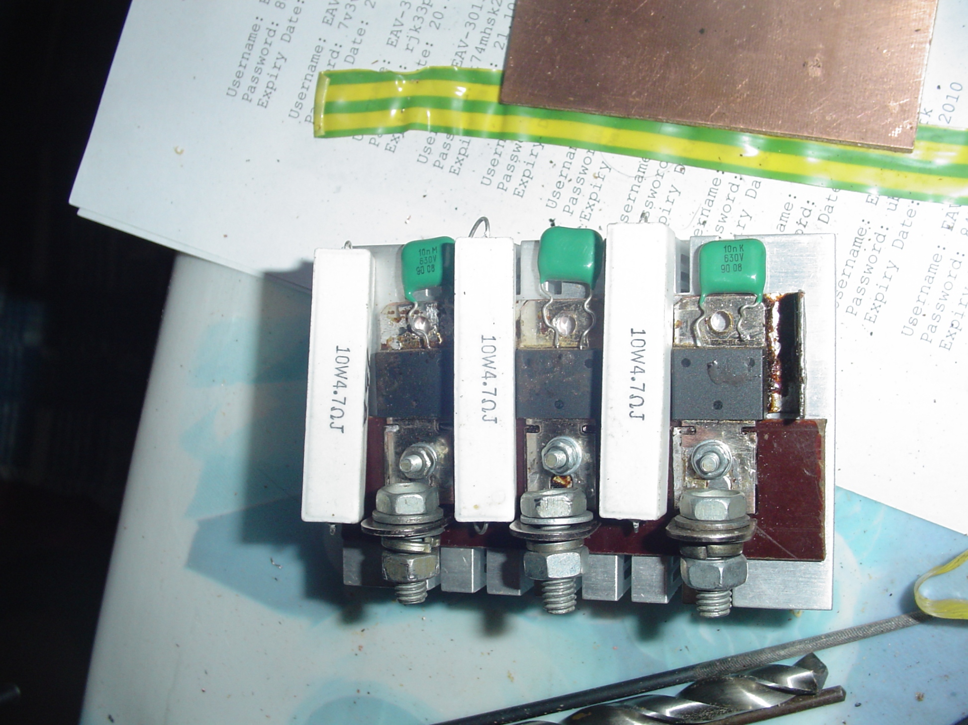 Сега съм замислил с метални планки запоени върху подложка от гетинакс да фиксирам анодите на диодите върху радиатора. Прекалено нежни ми се струват за захващане на медни обувки с болтове. Нещо такова имам впредвид.