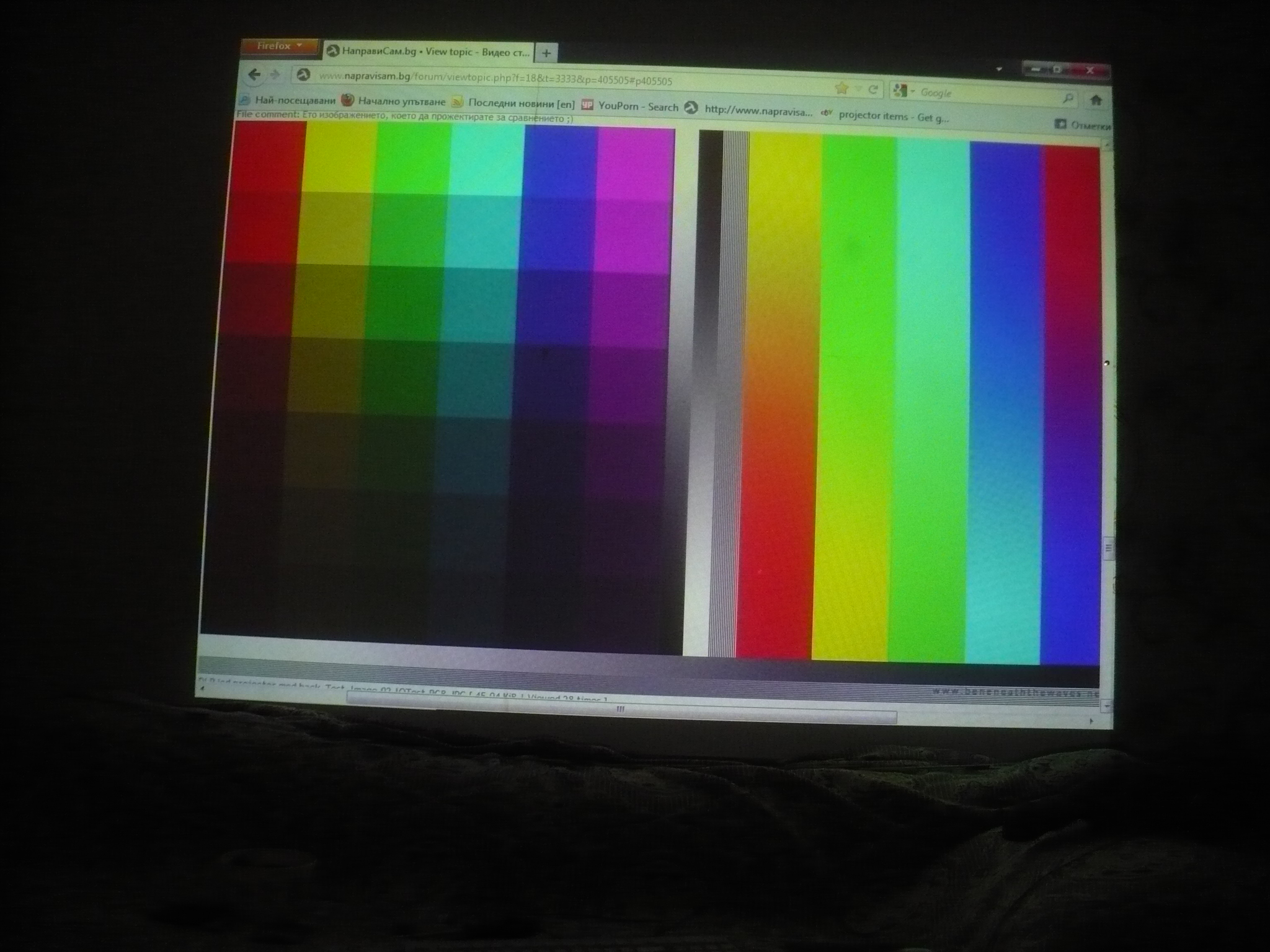 4- Снима се без всякакви подобрители на изображението, като апарата се държи над проектора за снимката!!