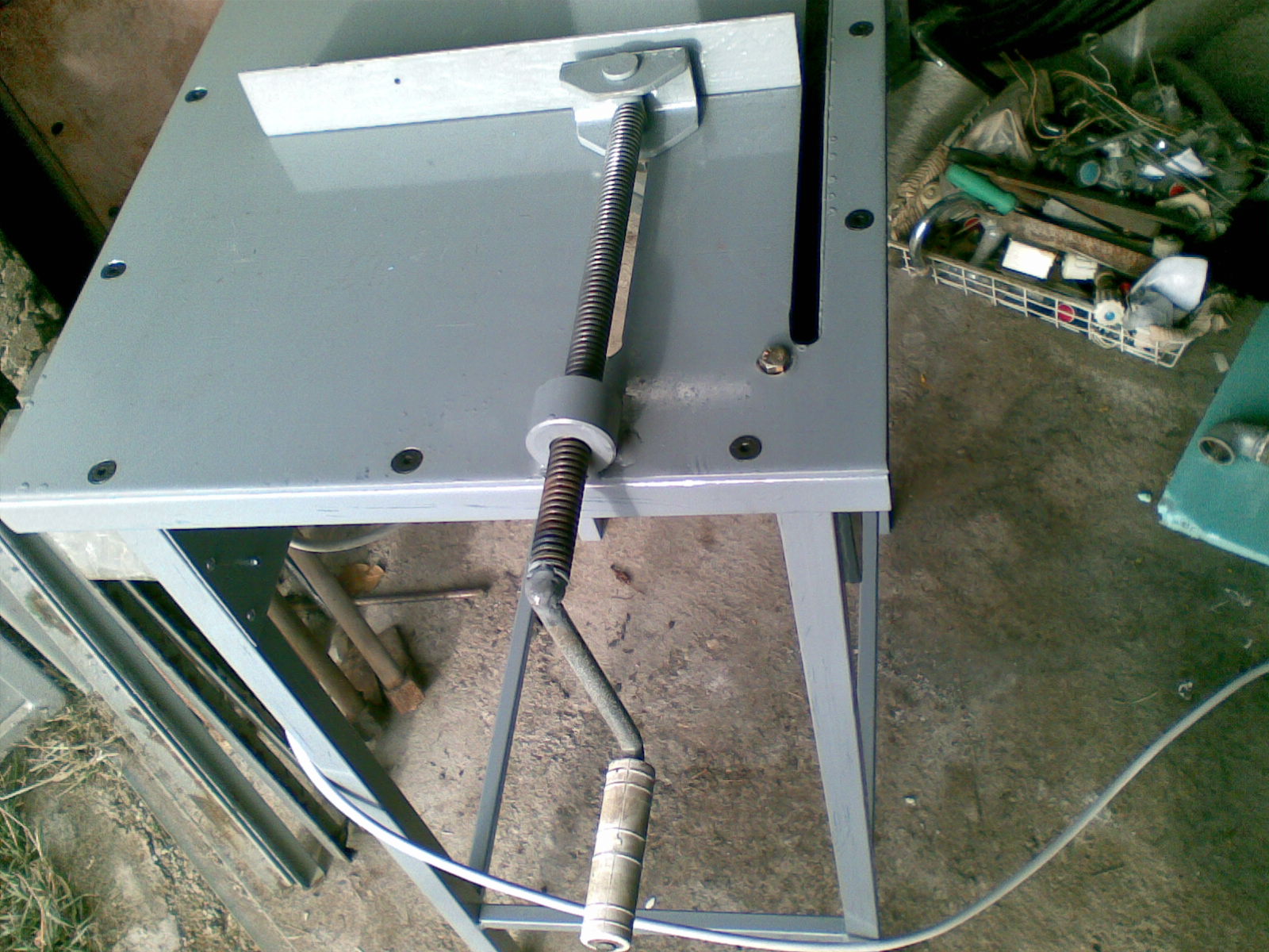 На първата снимка се вижда един отвор с резба на масата. Развивам по-близкия болт на винкела, завъртам го(винкела) и завивам в другия отвор.