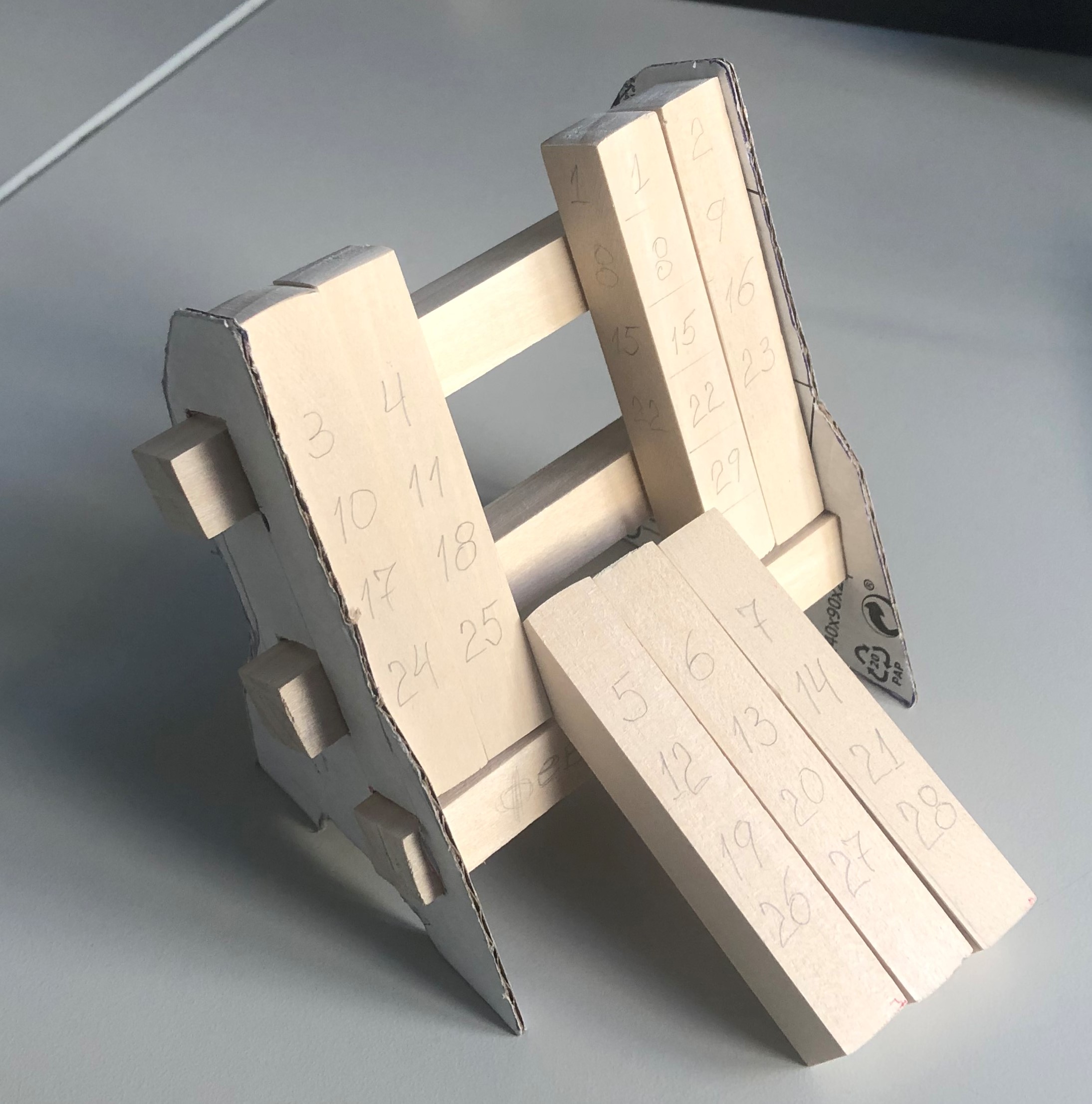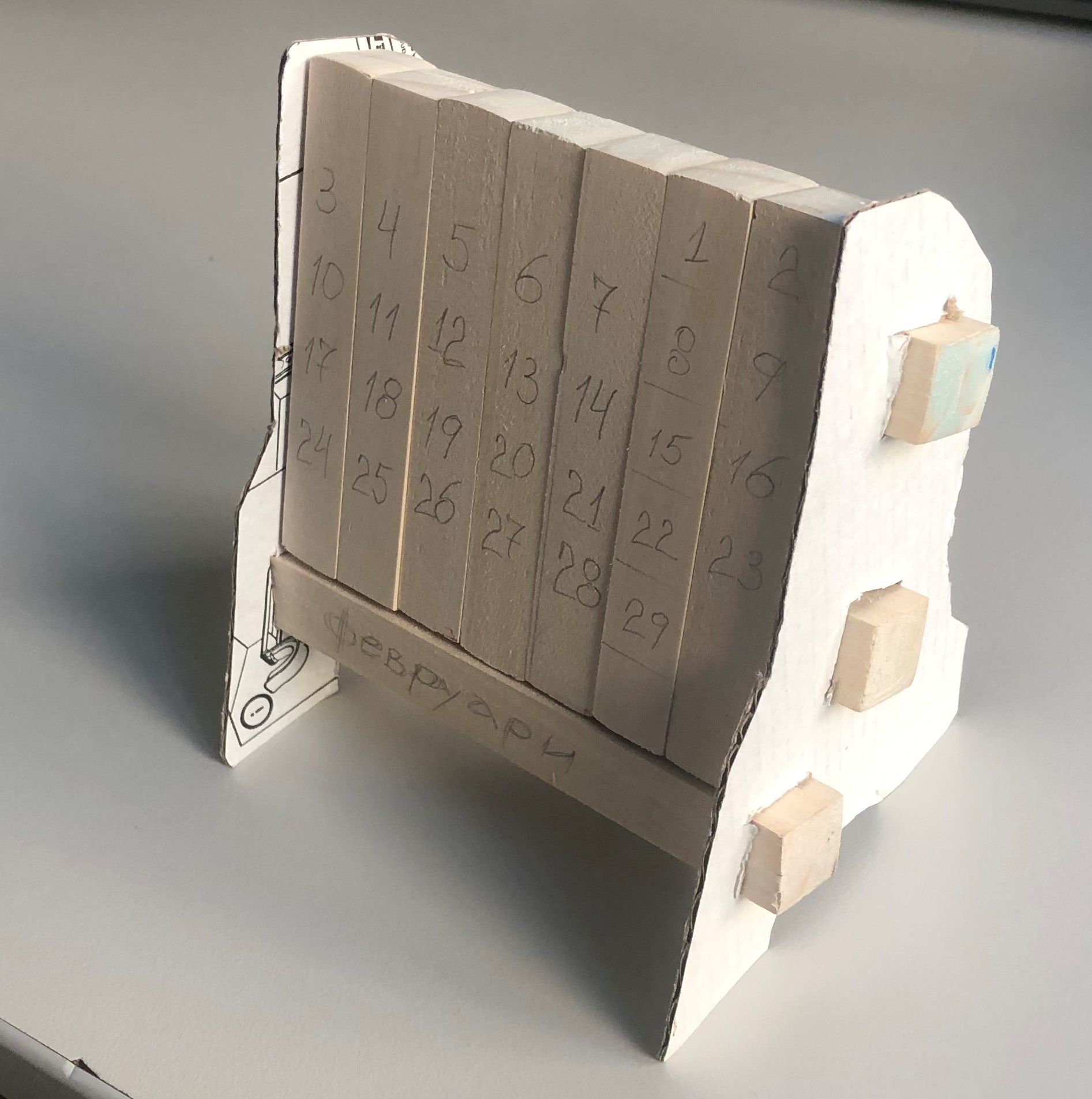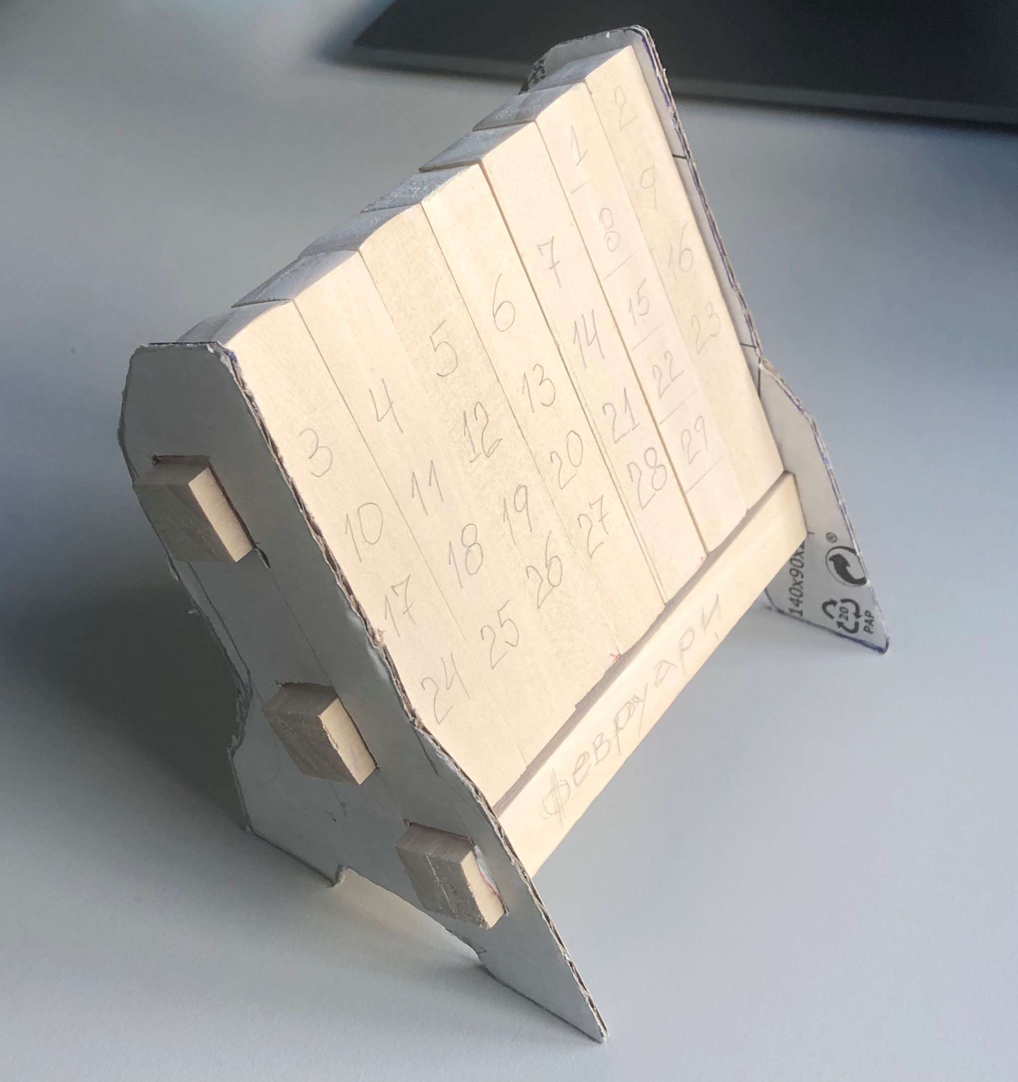 Засега е само прототип. Остава да надпиша дните и месеците, да намеря подходяща плоскост за двете страници (засега са изрязани от картон), както и да измися дизайна им. ... не знам защо, но нещо не ми допада тази им форма.