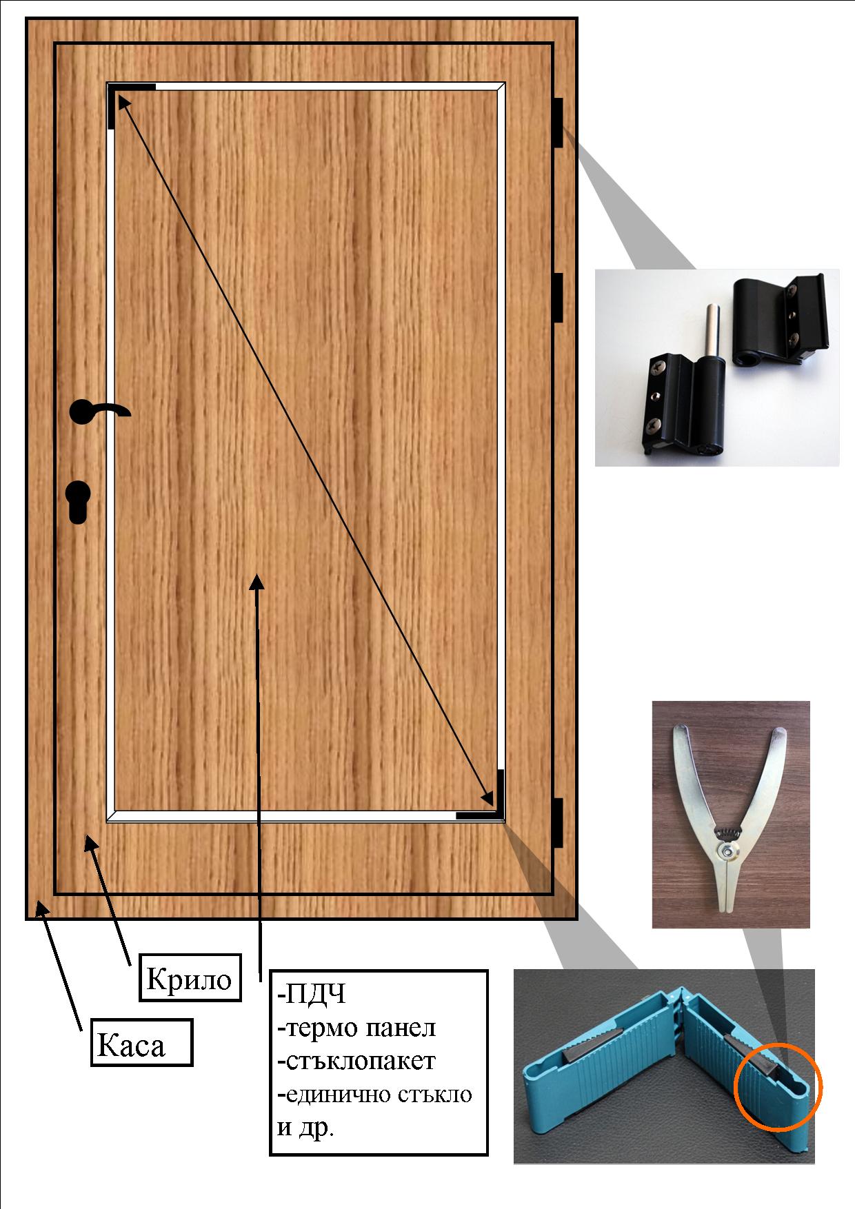 А хаа, сега вече ми се изясни картината. А въпросното закамяване(разпъване) се прави само по единия диагонал (този на снимката) или по двата?? Проверява ли се с нивелир? Това не разбрах. И сглобката в горният ъгъл (изпуснатата) е вътрешна може би? Следва да се подмени или напасне, че не мога да си представя? Благодаря за търпението и отговорите, ще погледна и пантите да не са криви.