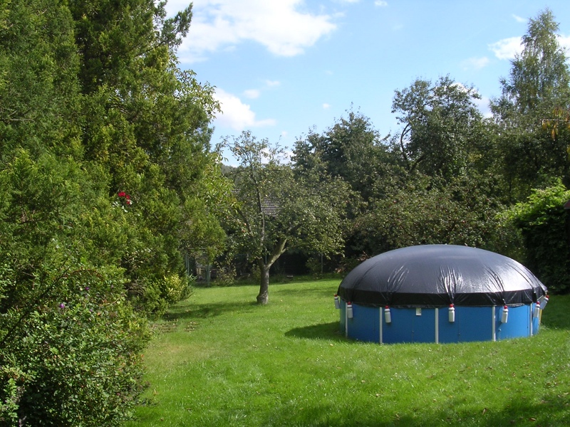 Нещо от този род искам да намеря но в БГ не го откривам.Слага се върху басейна,надува се и се получава купол,след което можеш да си го покриеш с покривало.