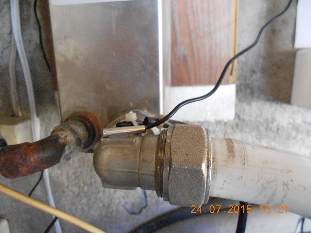 въздушния сензор на вход / "връщаща" се/ вода на топлообменника и сензор за термометъра