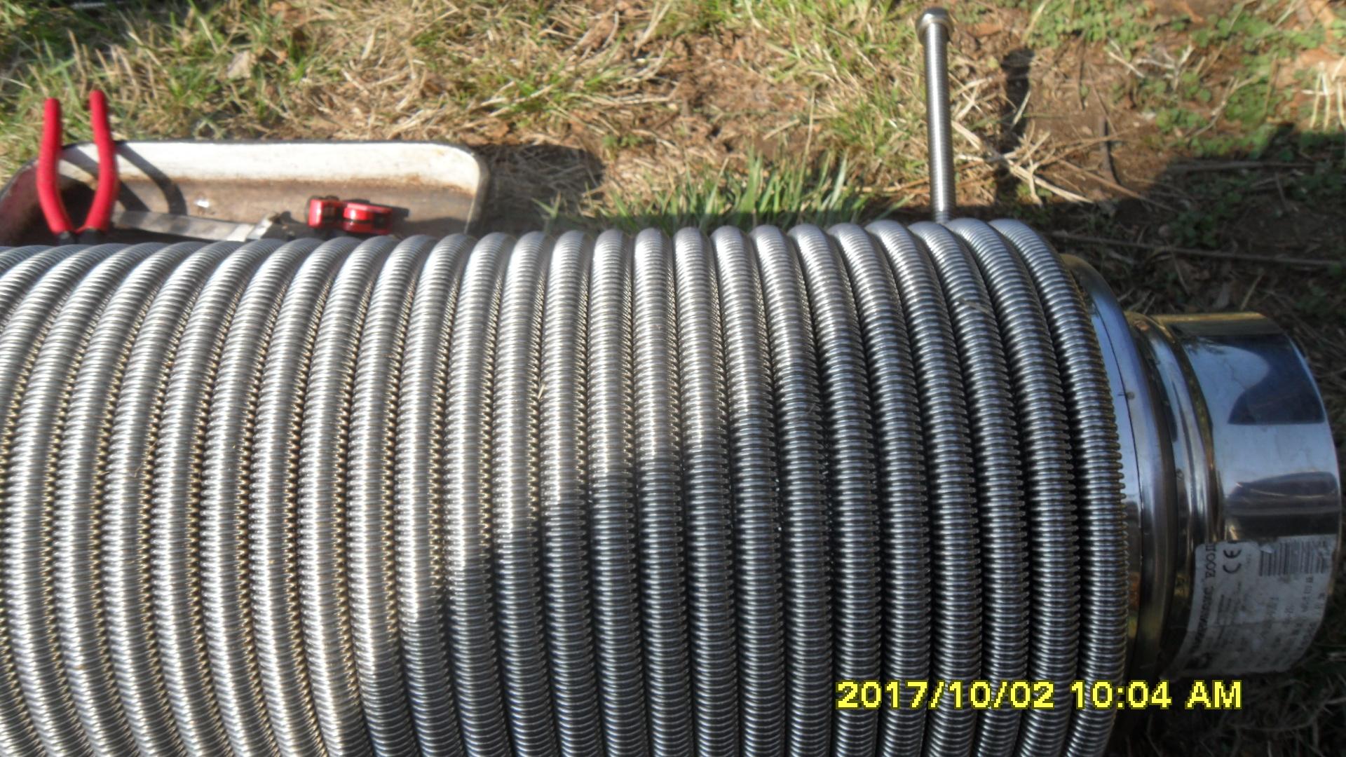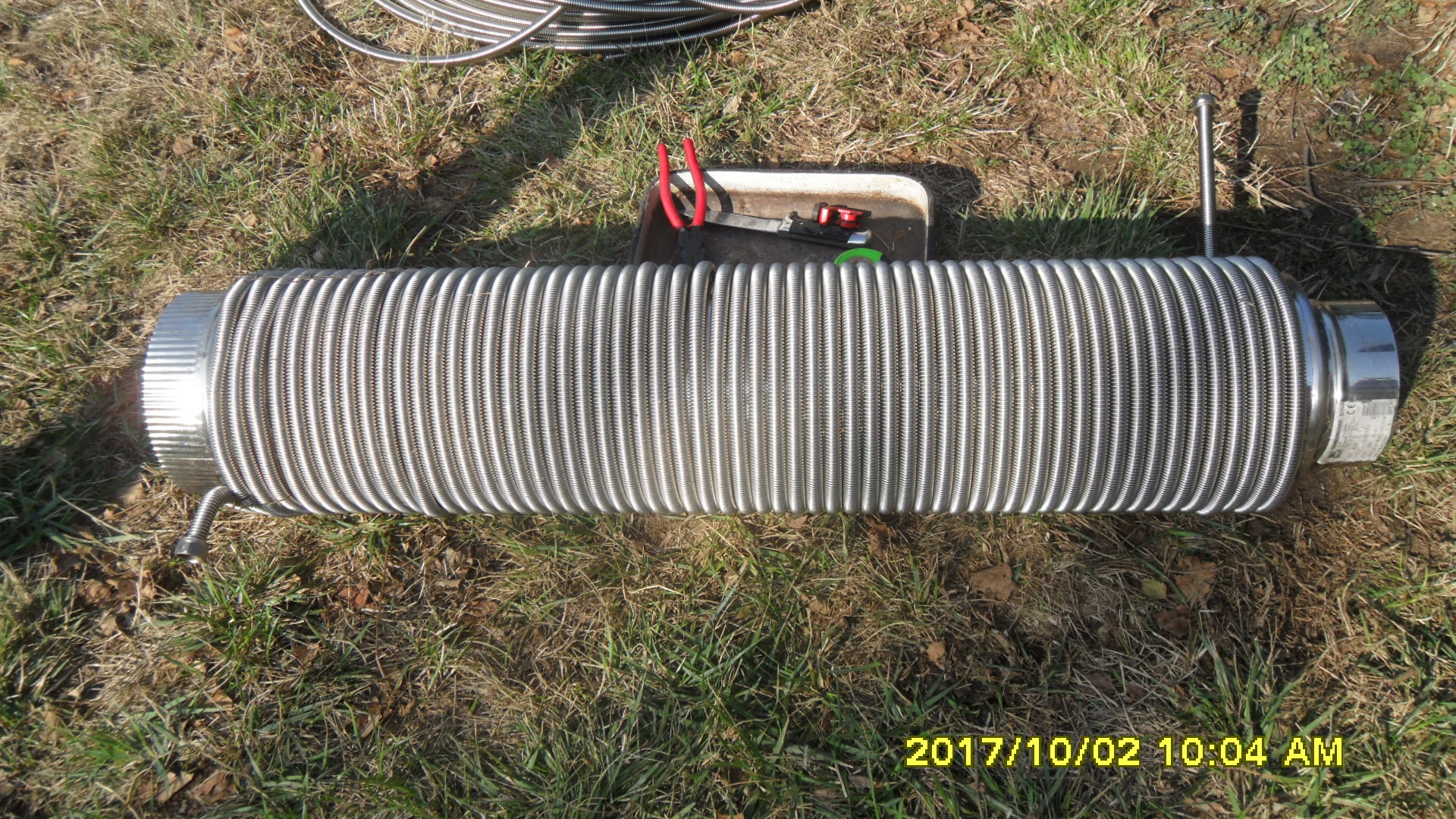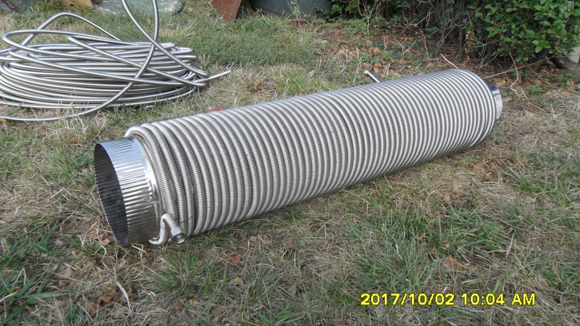 Хрумна ми една идея! Миналата седмица си направих един топлообменник от неръждаема тръба на димоотвода.