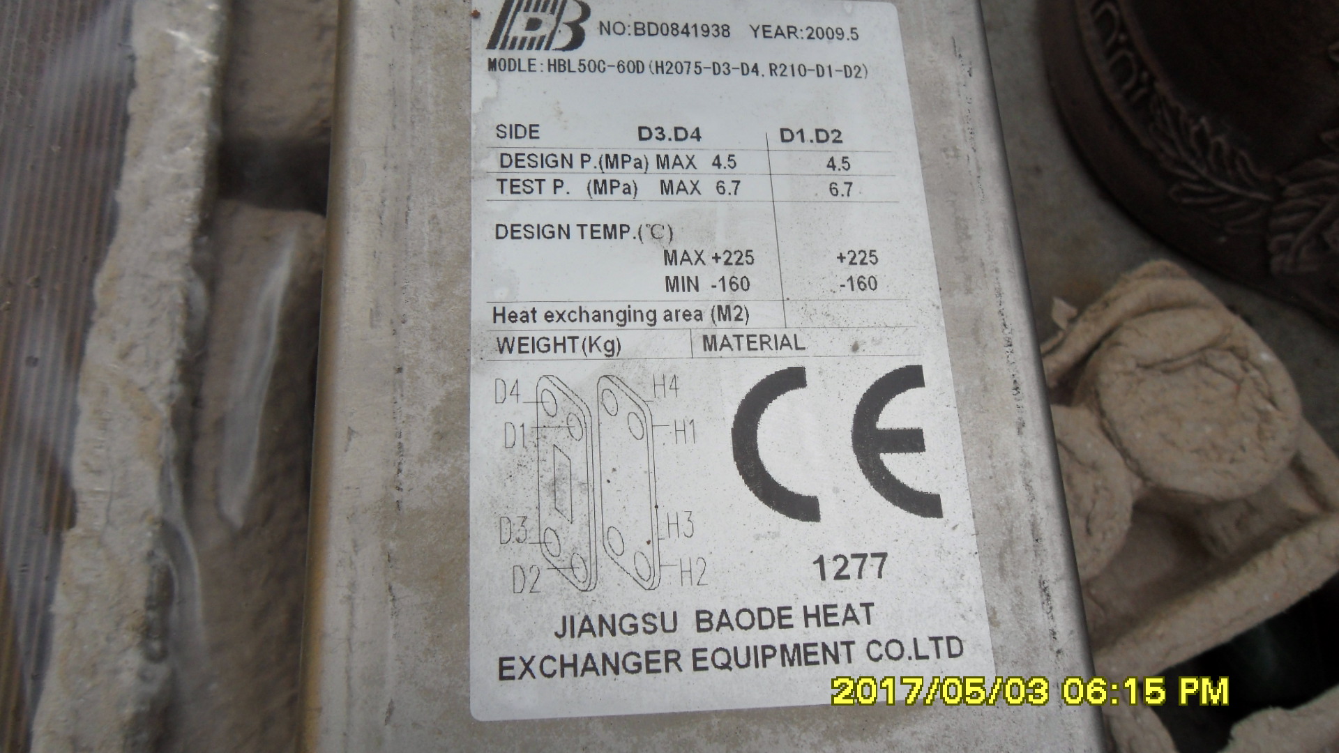 Ето такива два топлообменника с по 60 пластини съм монтирал: