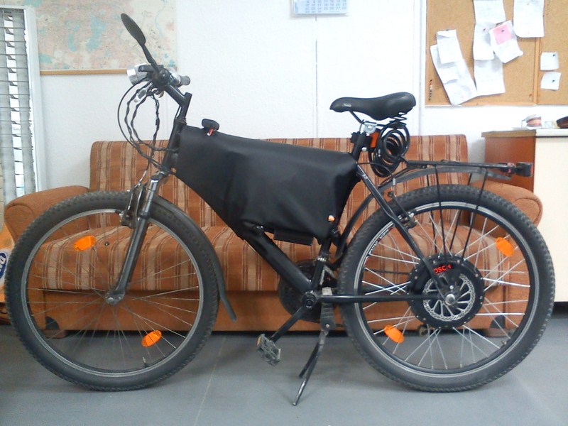48V 800W хъбов мотор, контролер с регенерация; батерия 48V 20Ah LiFePO4 ; фар с 12W светодиод (4х3W); Волт/ватметър като от горния линк ; дебели гуми Schwalbe Table Top 26x2.2