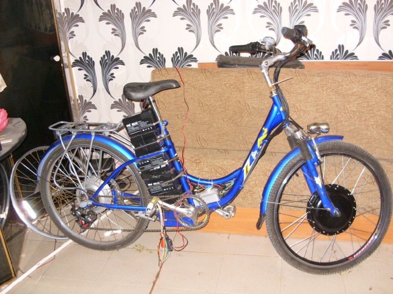 и оригинално ел. колело 36V работи на 48 V. ето го моето - 60 кг + аз 135 = над 190 . орг. двигател + един конрадски + 8 ак. 7 ампера