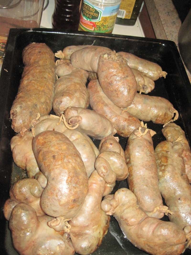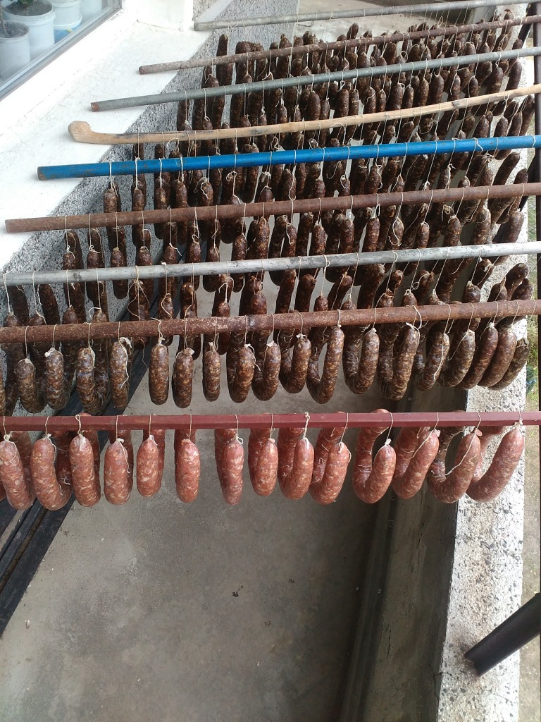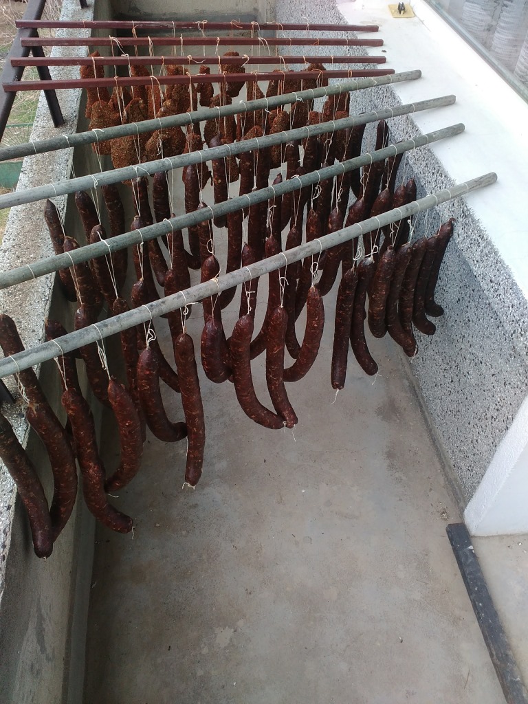 И аз "прострях прането",да съхне.Правих разни комбинации-телешко;телешко,свинско и конско;;телешко и свинско;свинско и конско и само свинско.Ползвах различни рецепти за надениците и филетата.Ще видим на какво ще мязат.Вино,ракия и приятели,дал бог по много :-D