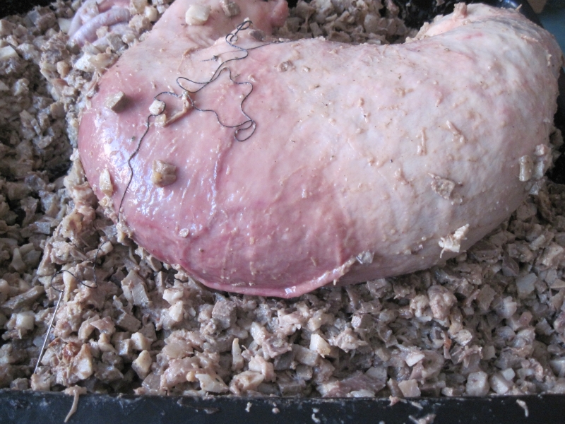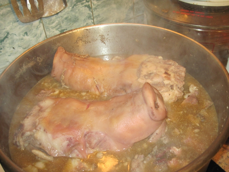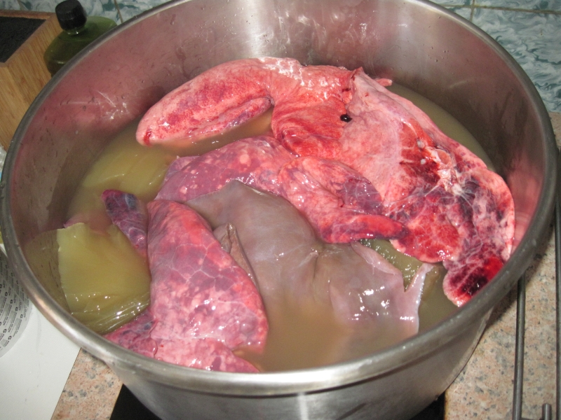 За целта е необходима една свинска глава, бял, черен дроб. Може също да се използват сърца, далак, бъбреци. Аз имах само дроб.