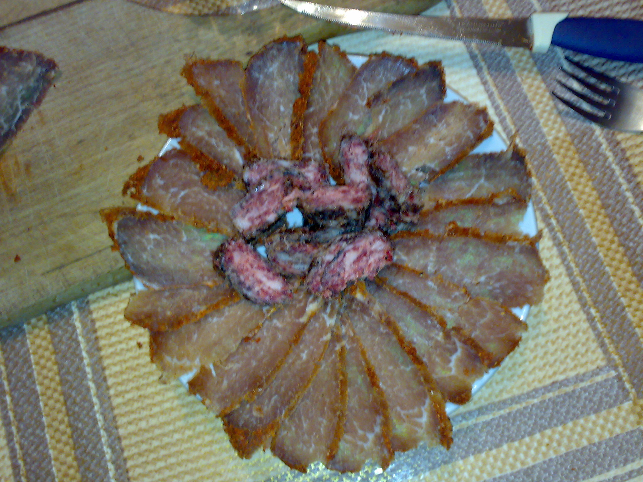 Суджука е от конско със свинчуга, а пастърмите са телешка и свинска.