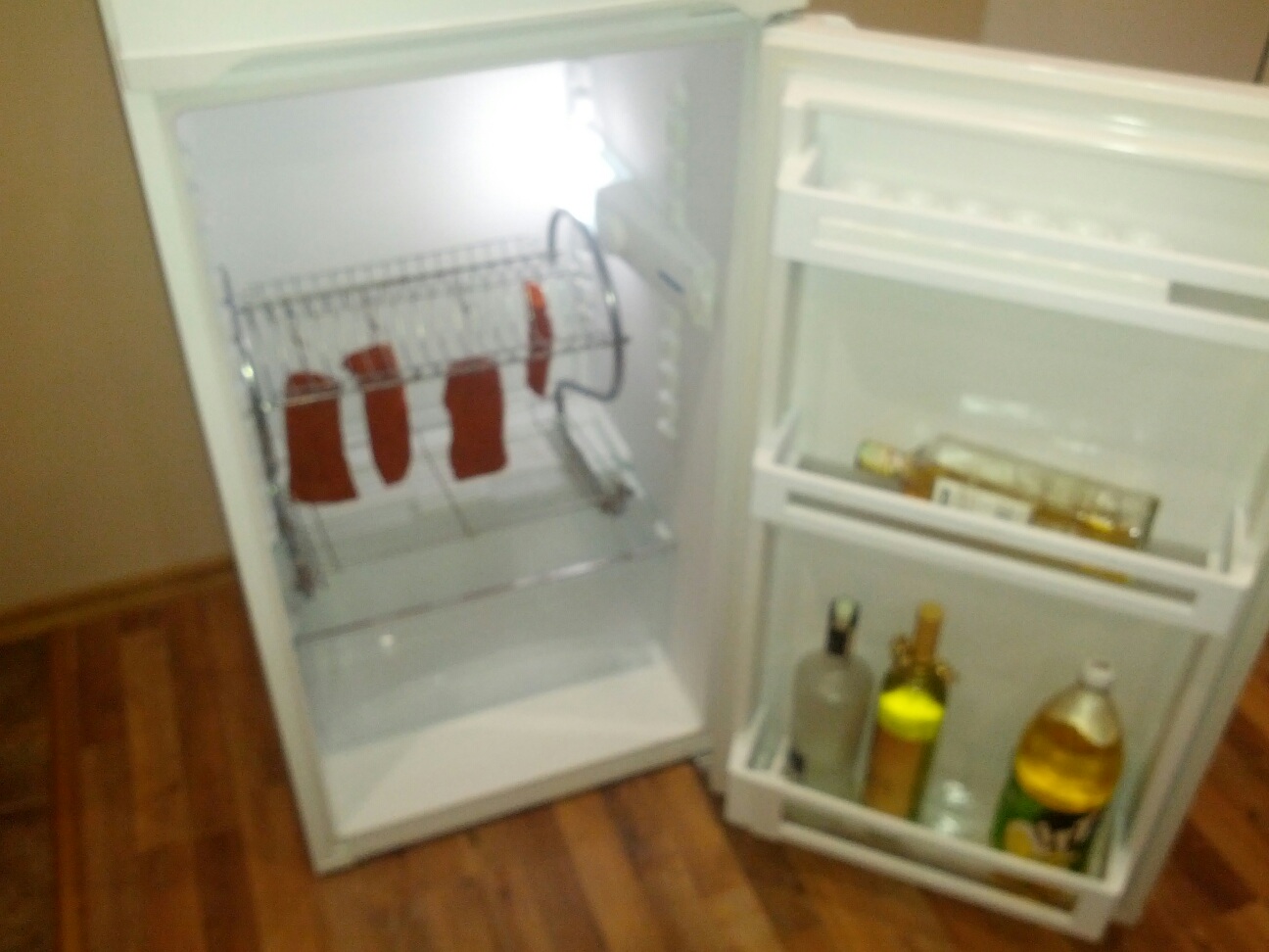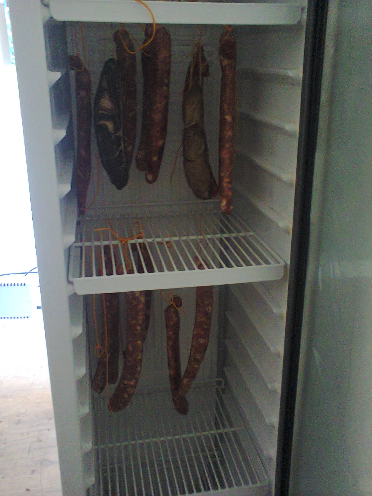 Заложих първите си филенца от свинско контра филе.Две във морска сол по рецептана Стив и 2 във марината със сол и алкохол.Забравих да направя снимки.Като им слагам подправките ще снимам.Майтапа е, че рафтовете на хладилника ми са стъклени, няма ни една решетка за провисване на филенцата.Ще го мисля.