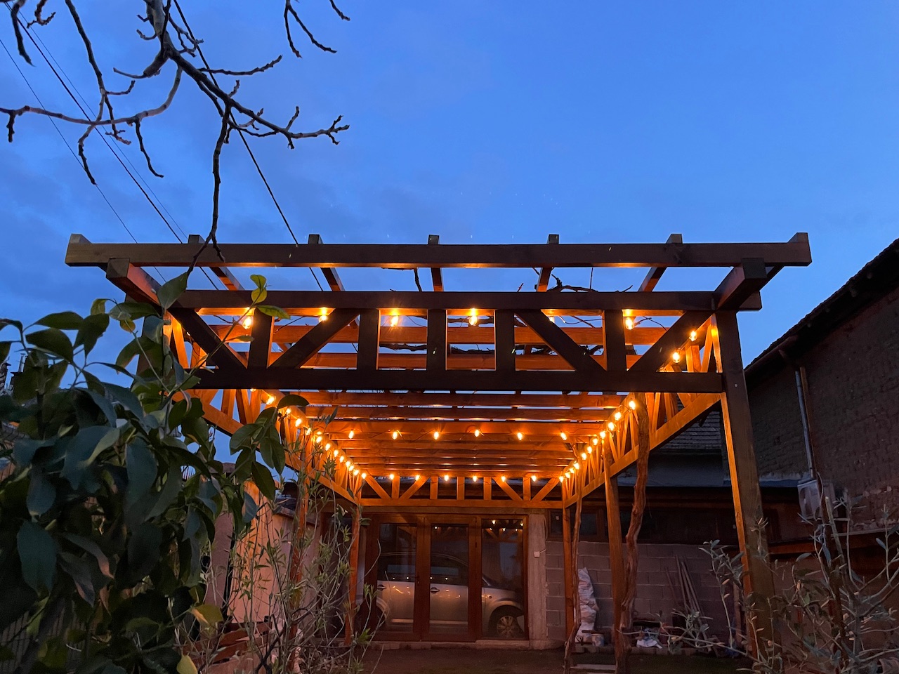 Сега планирам тази да изчезне, и да я замени същият тип конструкция, но по дължината на гаража. Има забележки, ама без да съм търсил - и купувачи на сегашната се намериха. Е, едната лоза ще изчезне вероятно, че искам и въздух, ще я заменят нови две с друго разположение. Само време да има.
