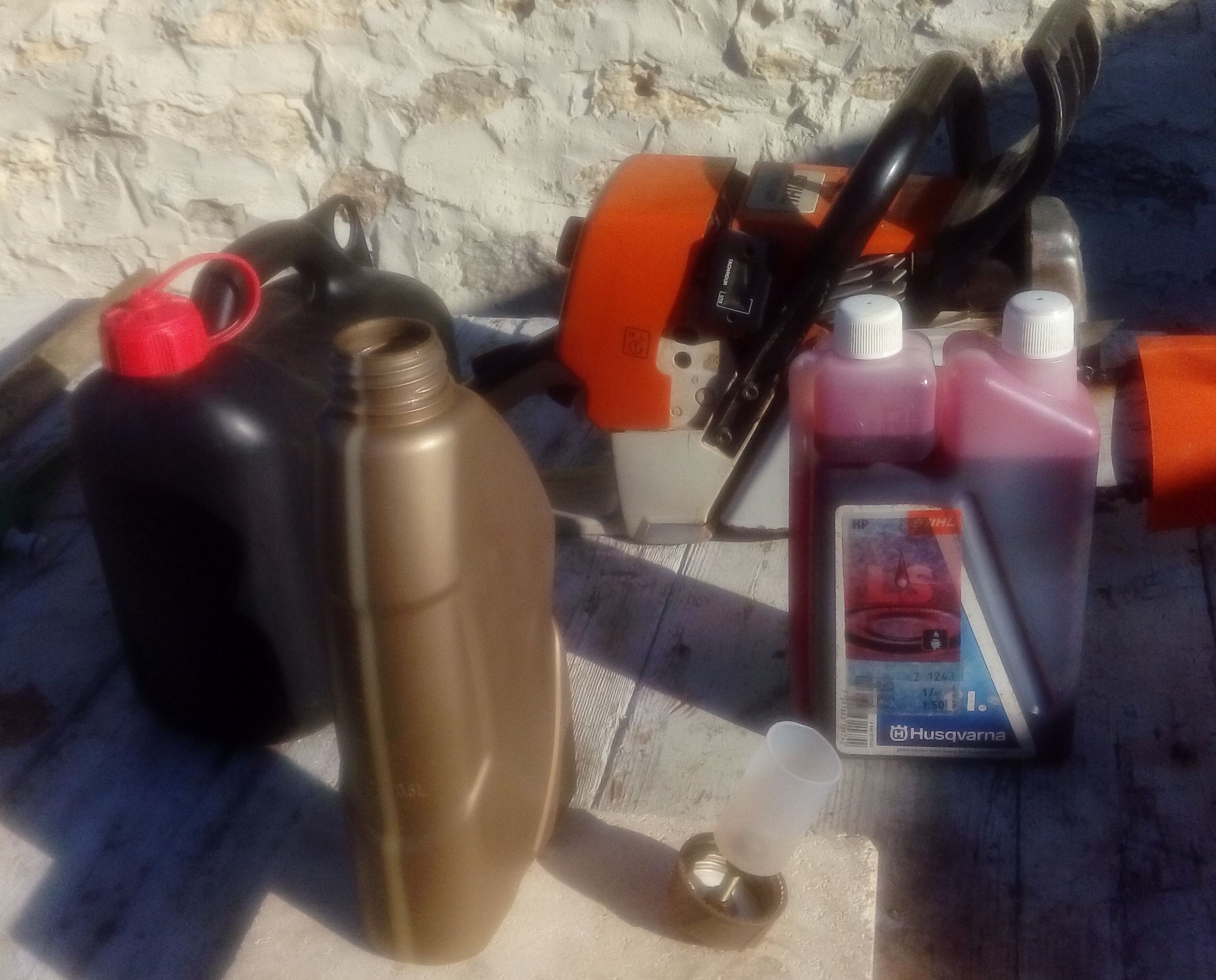 Срещам противоречие между мненията по такава дребна на пръв поглед подробност, кое да се налива първо. "Stihl" пишат: