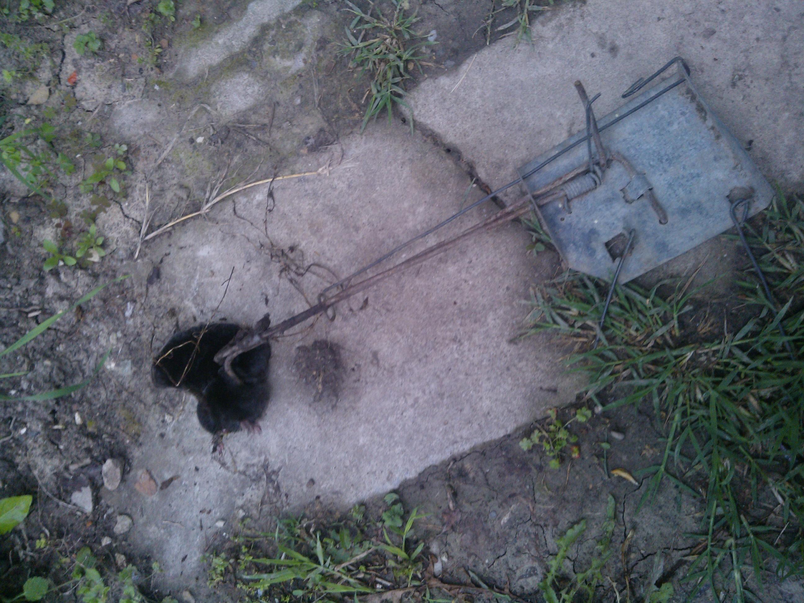 И само да добавя, не хваща всеки път, когато се задейства и много зависи от начина на поставяне в дупката. Понякога дупката се разклонява и е възможно да зарови капана без да задейства спусъка. Затова се е случвало да дълбая докато стигна до подходящ прав участък на тунела. Някои от животинките затварят дупката с купчинка пръст, която се вижда, докато други я затварят с много здраво уплътняване на пръста на 7-8 см. преди отвора. И поради всичките тези причини се натрупва опит в поставянето на капана. Хубаво е да имаш две бройки, защото при разкопаване на пръста почти винаги се отварят две дупки и не знаеш на коя дупка да поставиш капана. На една дупка съм хващал до 4 броя слепи кучета. Ако хвана кърт на някоя дупка, на нея повече не залагам, защото са защитени.