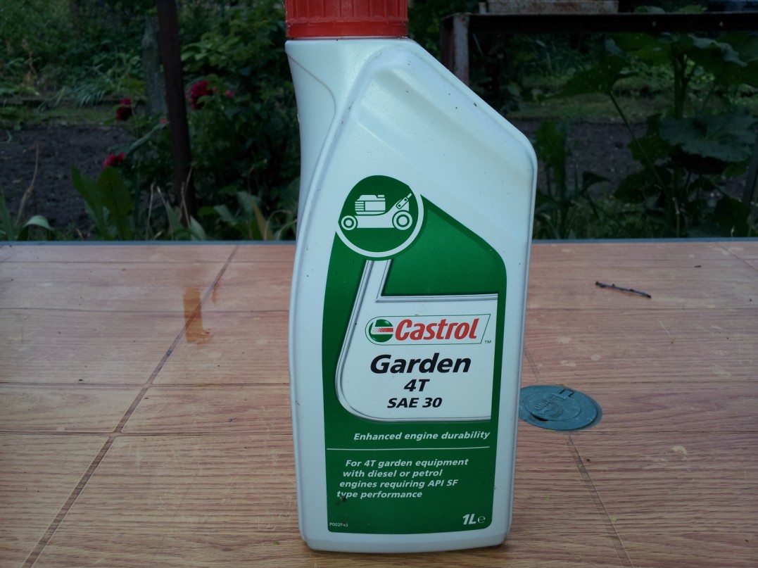 Маслото което ти трябва е W30, дали е W30 или 5W30 или 10W30 зависи дали ще ползваш машинката зимата. В общи линии ти трябва масло за четиритактов двигател с въздушно охлаждане който по принцип работи на по висока температура от същия с водно охлаждане. :wink: