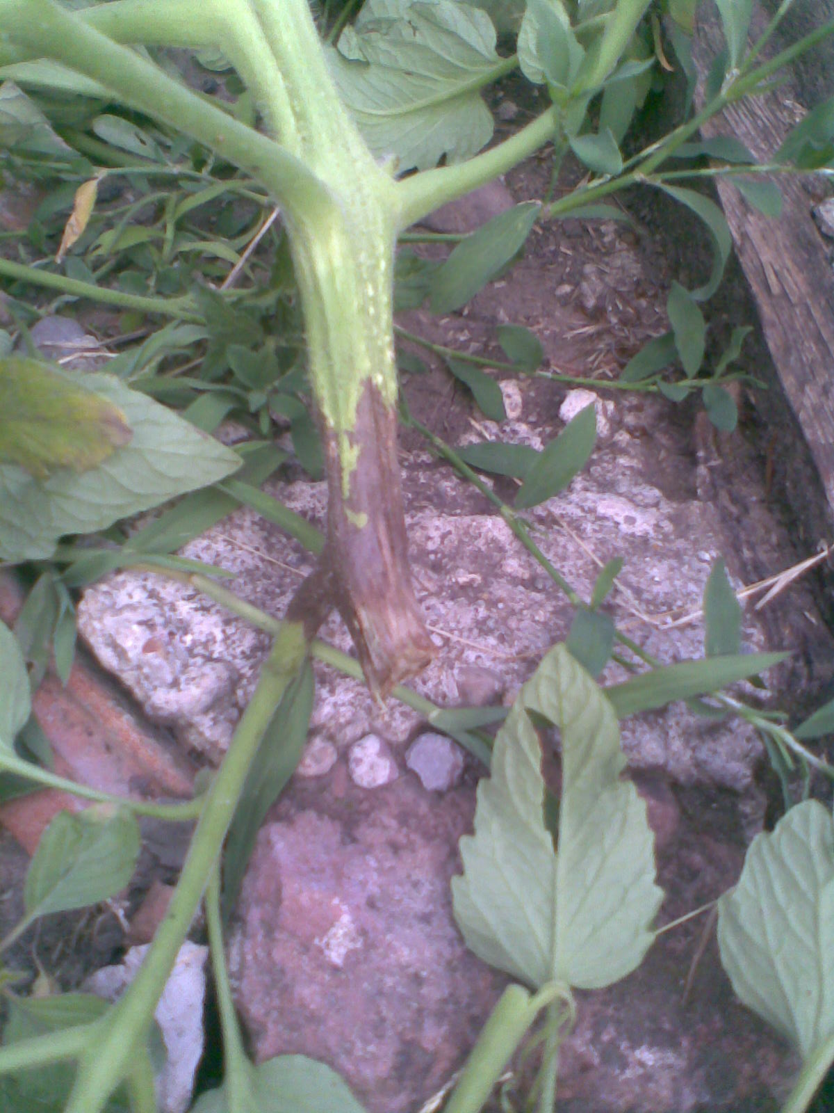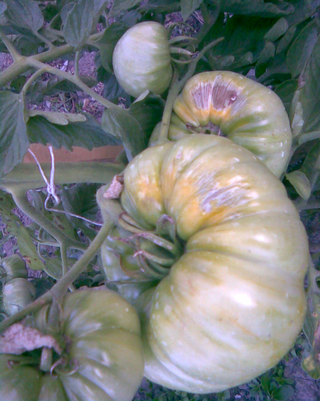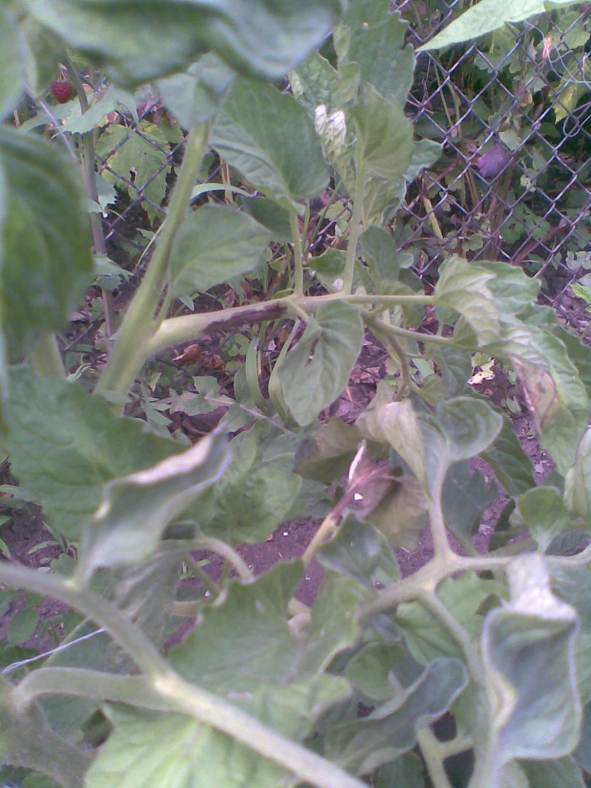 Може и да си прав, но аз торих, когато растенията бяха 1 педя. Това не е моя снимка, но и при мене е почти същото, макар и по-слабо огънати листа. Засегнатите стъбла са 1/3 от всички и то произволно разположени. Има някои домати/плодове/, които приличат на мутанти