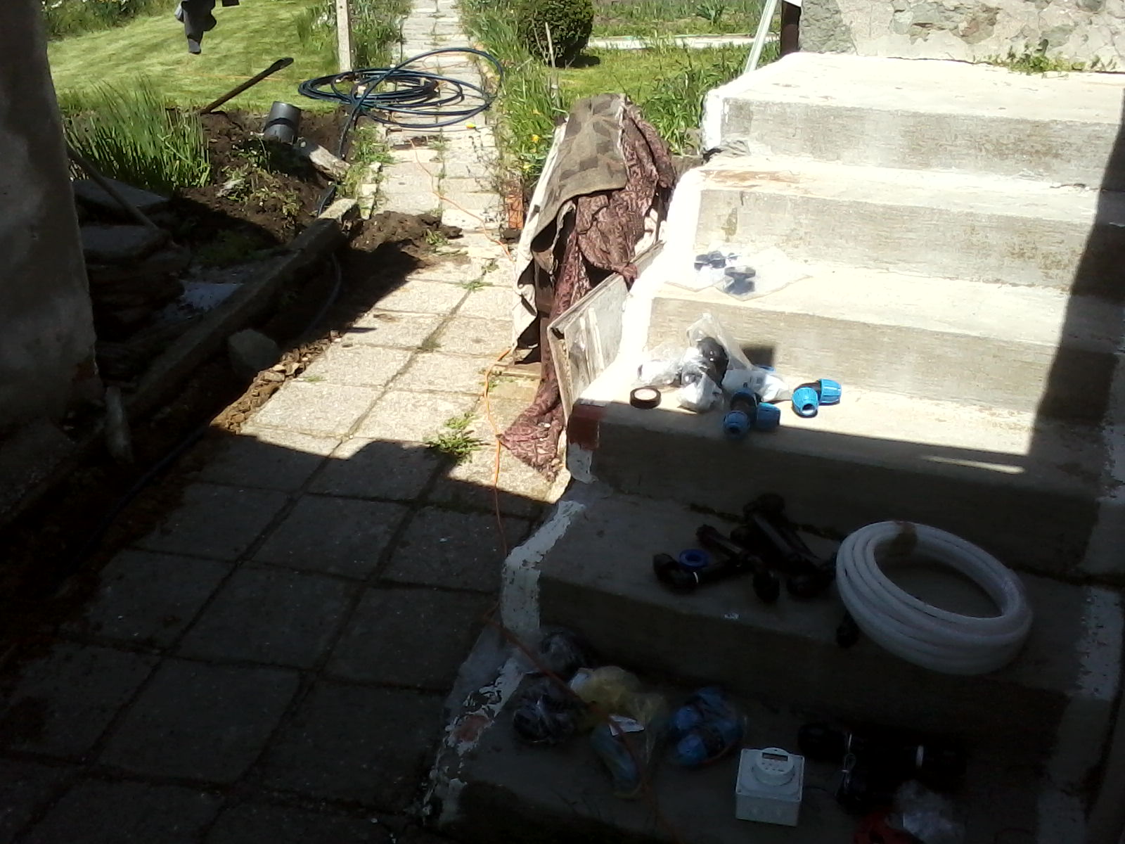 Днес започнах с поставянето на тръбите.когато пуснах водата и седя малко под налягане и изведнъж едната тръба преди клапана излезе.след като го разглобих се оказа че съм объркал как се слага бялото пръстенче и сега ме е страх да я оставя с налягане да не вземе да излезе че тогава както хидразин каза ще ме е страх от родителите ми като видят сметката.И още нещо пробвах програматора и работеше клапана се отваря и затваря без проблеми но като се затваря почва да "скача".Така се получаваше като затворя изведнъж кранче тип сфера