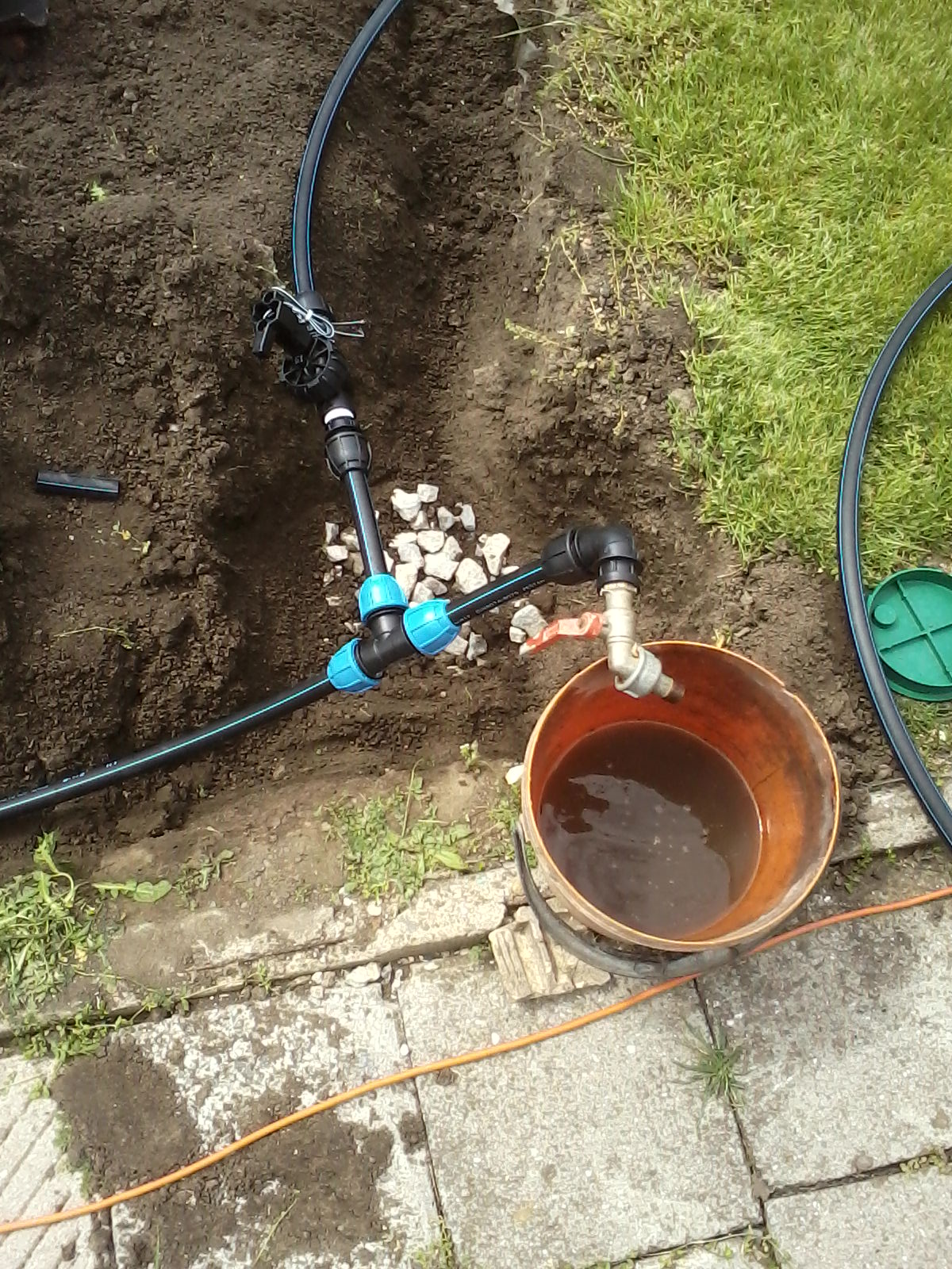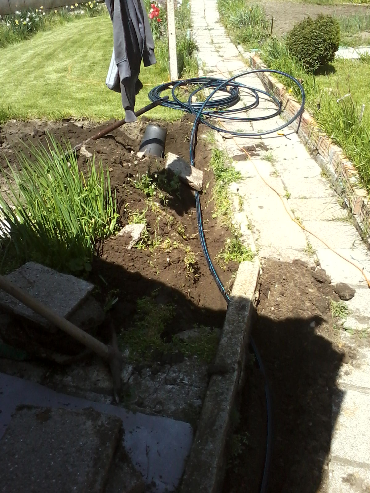 Идеята е за автоматизирано поливане на тревната площ , която включва всичко без алпинариума и частта под кипарисите, които засенчват толкова че трева не вирее - там предвиждам да си сложа люлката и някой друг камък + цветна аранжировка на терена