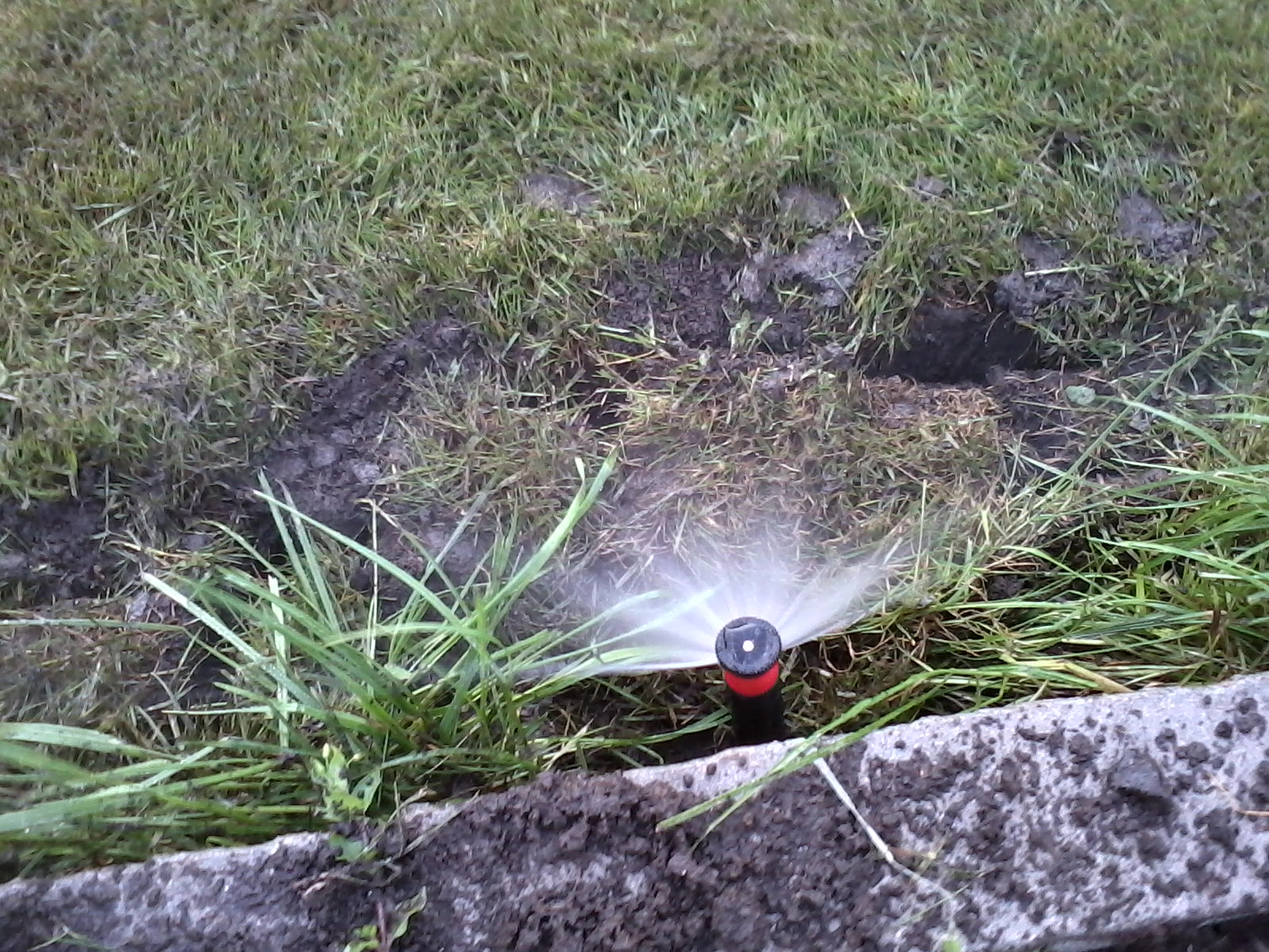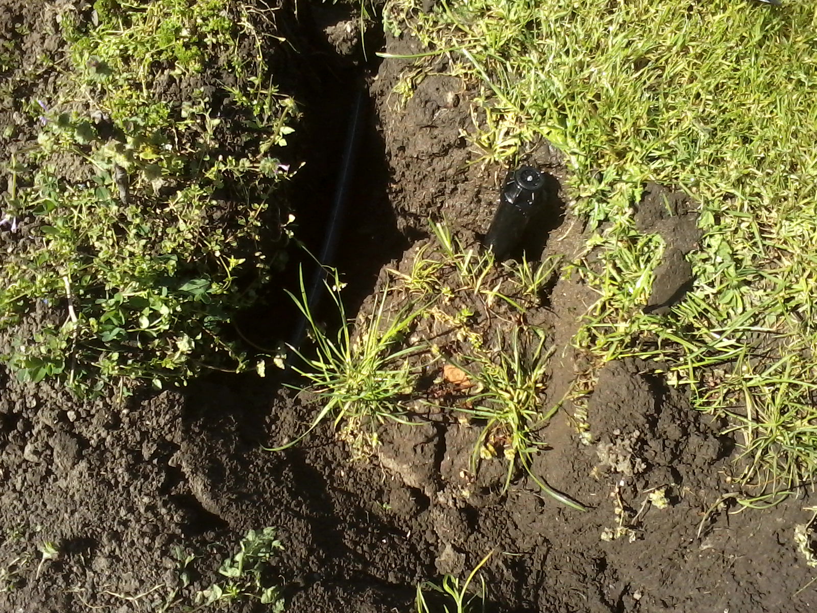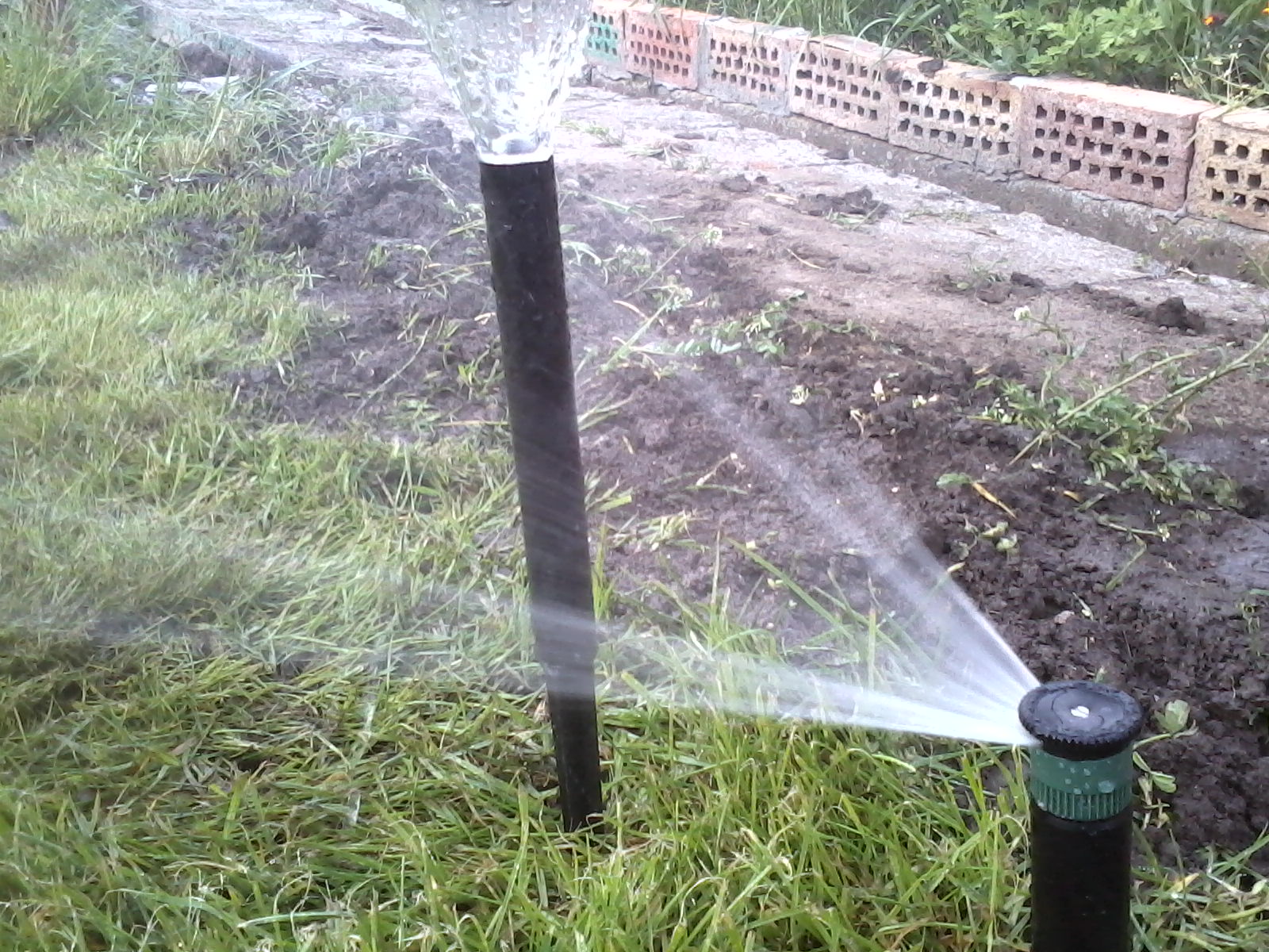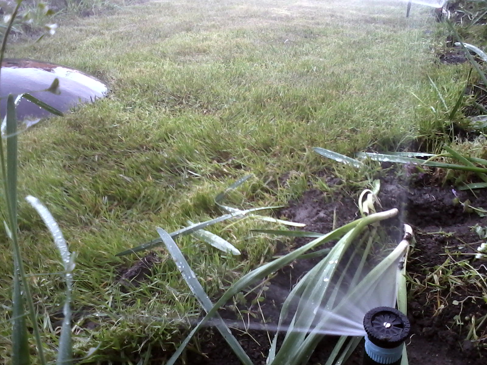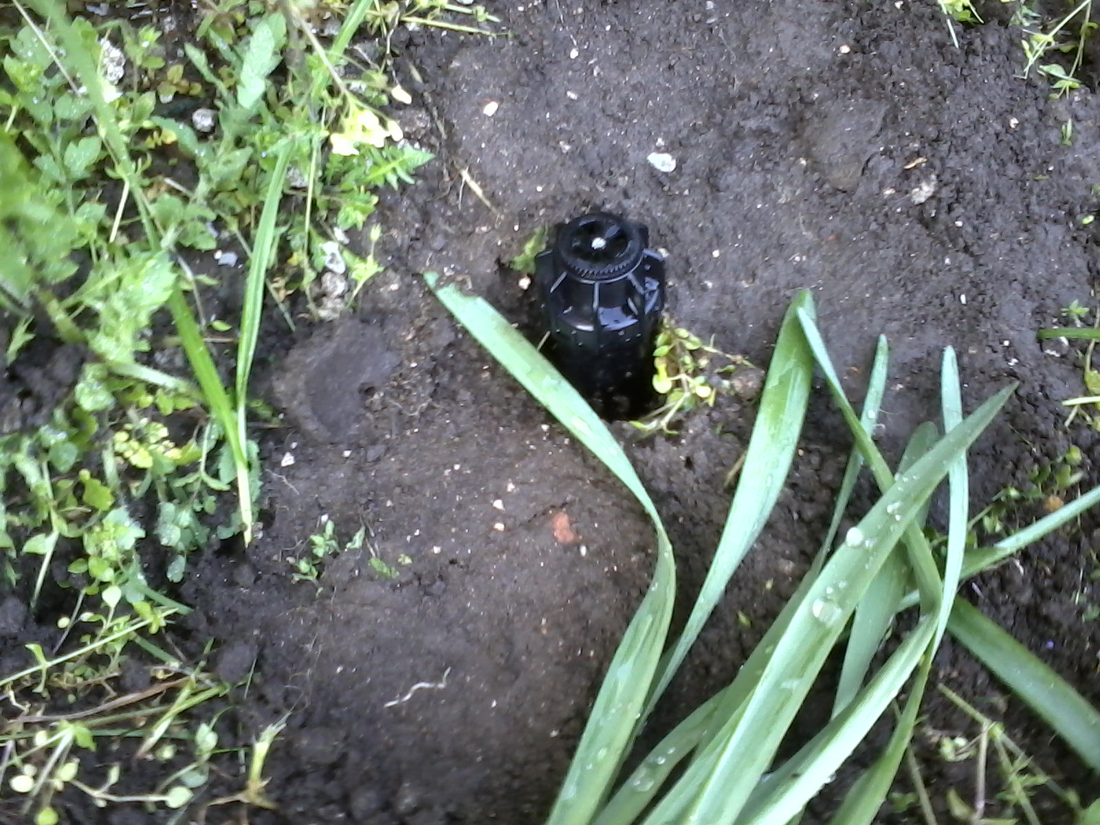 Между другото стеблото на разпръсквача не ми харесва така. Много излиза над земята - ще се спъваш или ще го окосиш някой ден с косачката.