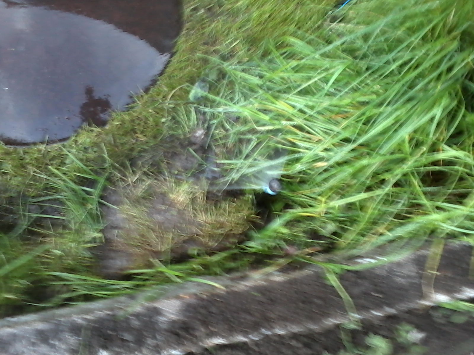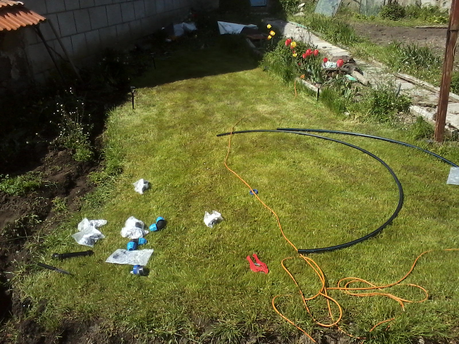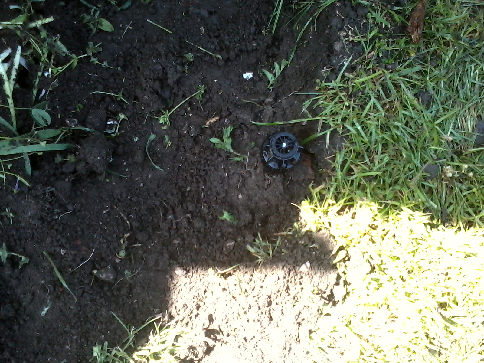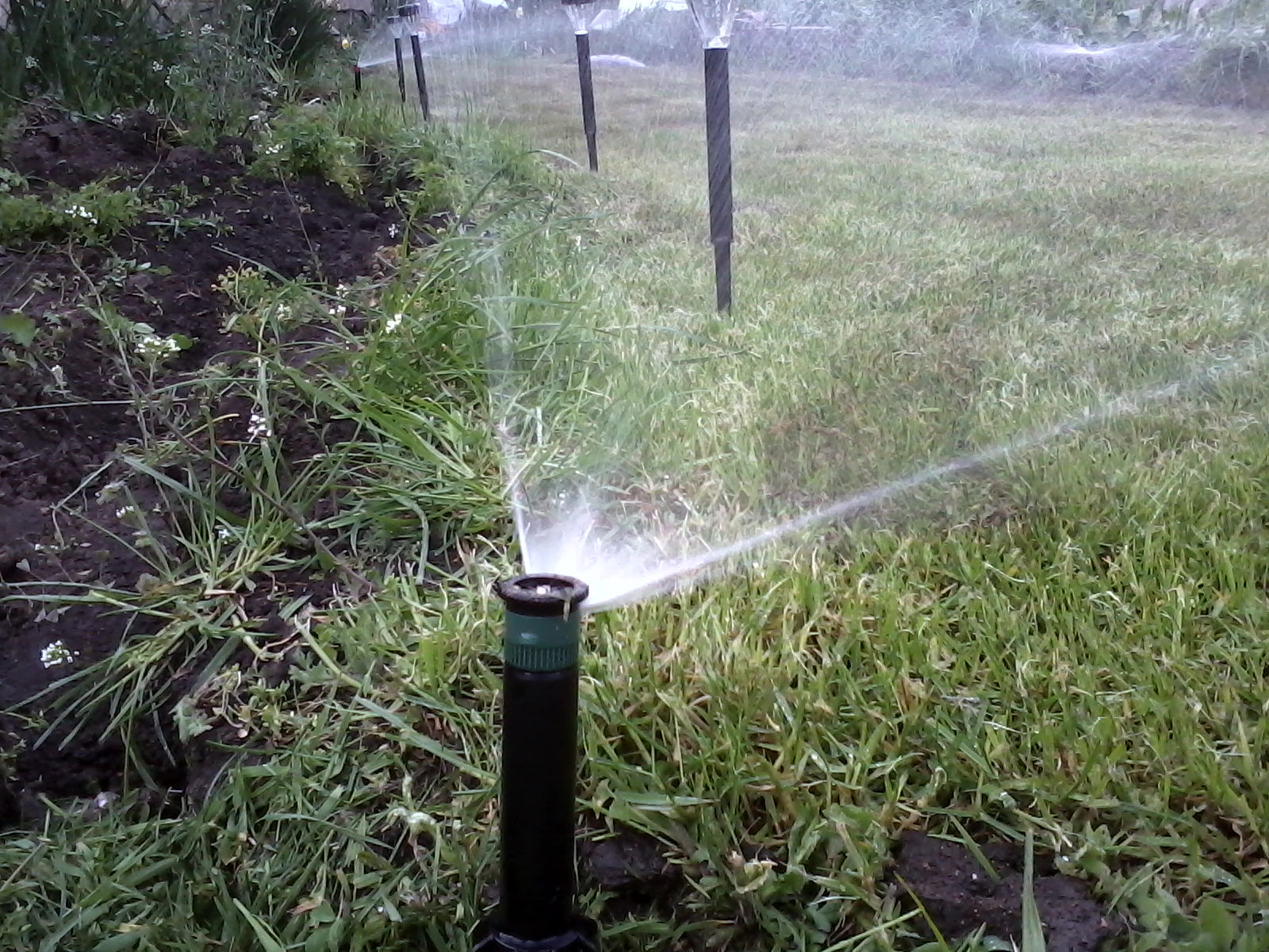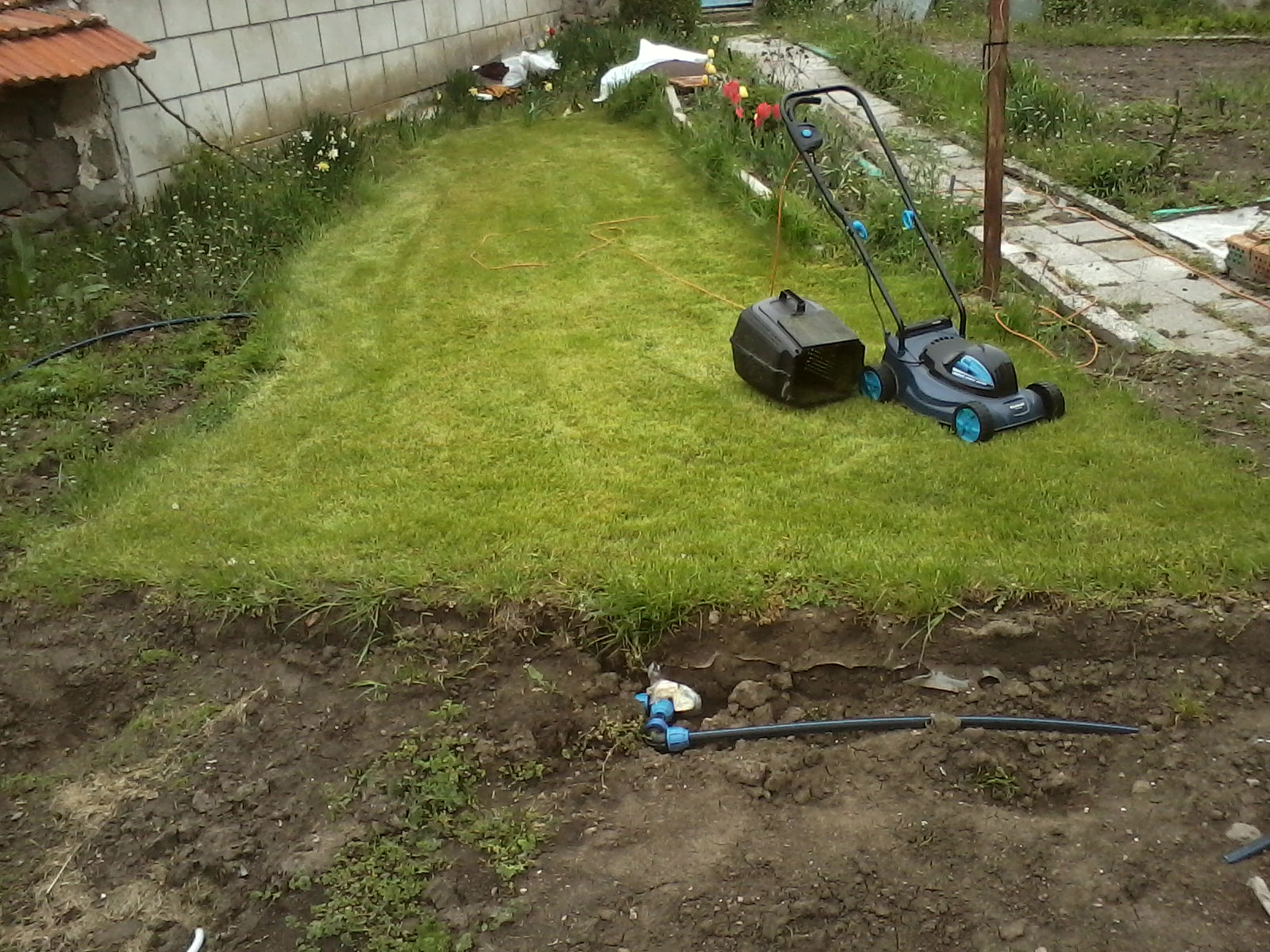 Между другото стеблото на разпръсквача не ми харесва така. Много излиза над земята - ще се спъваш или ще го окосиш някой ден с косачката.