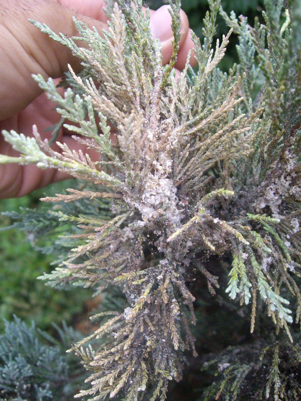 Имам в двора три броя от Juniperus Moonglow. Днес забелязах че по върховете им има някакви образувания обвити в паяжина, мисля. Дали това е проблем за дръвчетата и какви мерки да предприема?