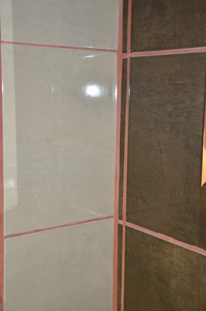 - никак не е пестена фугиращата смес - може би като количество е излязла колкото лепилото. най лошото е, че вероятно за тази "работа" е платено, но също вероятно е, да е работено според плащането.
