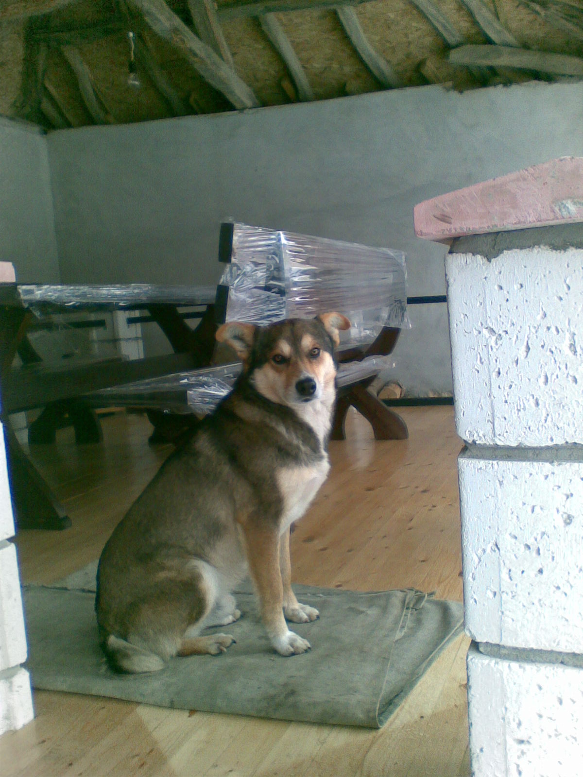 Винаги му събираме кокали и стар хляб. Иначе е чобанско куче, но си дава отпуска при нас. Бях струпал дърва до оградата и той по тях се качваше на оградата, оттам върху банятя и газ по кучки