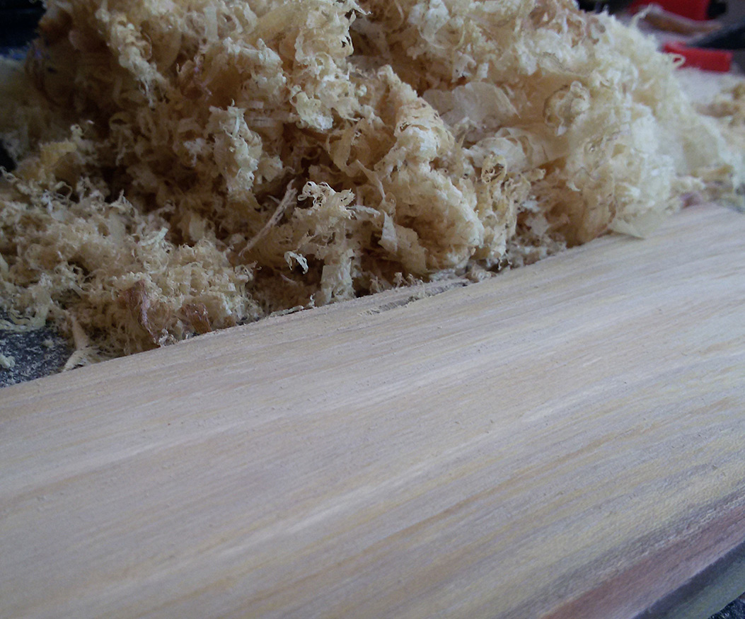 Ето и орех за пробата - с ореха нямам проблеми с рендето и в двете посоки. (стружката е свалена от другата страна на дъската):