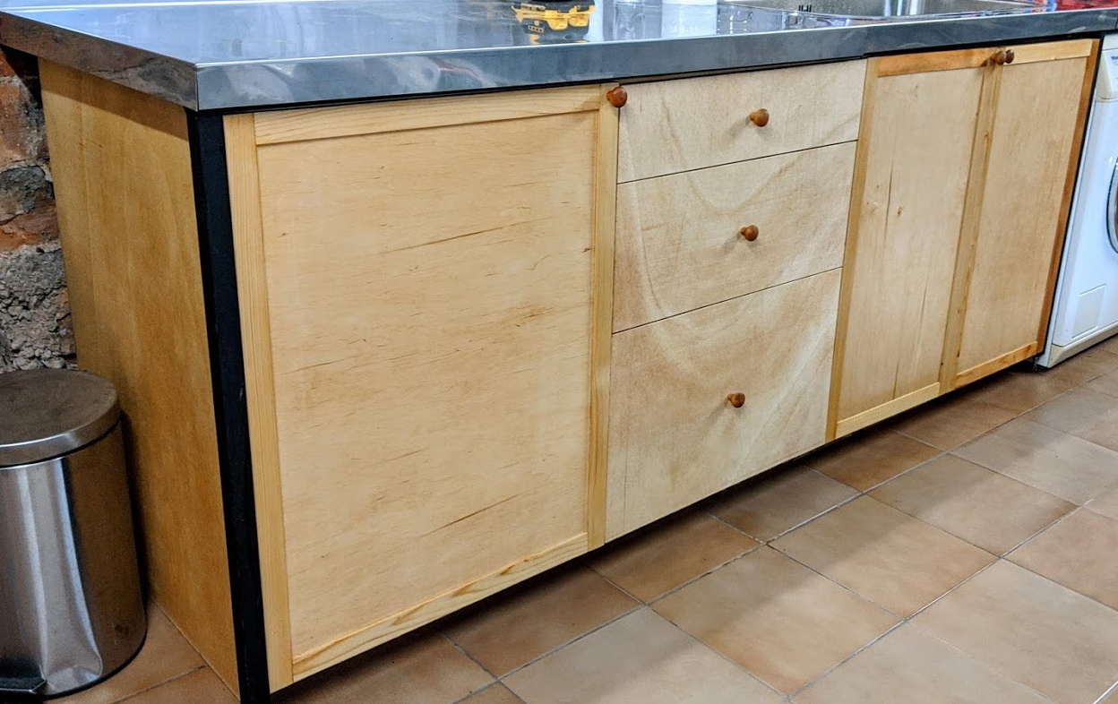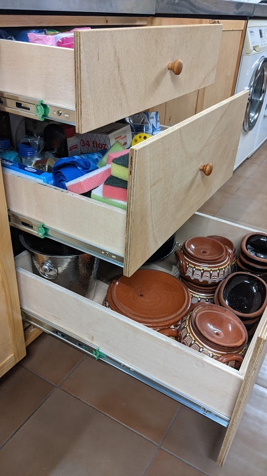 Минавам да покажа крайния резултат от чекмеджетата и шкафа като цяло. Доволен съм като за първи опит в шкаф-правенето - като за мазето бива :)