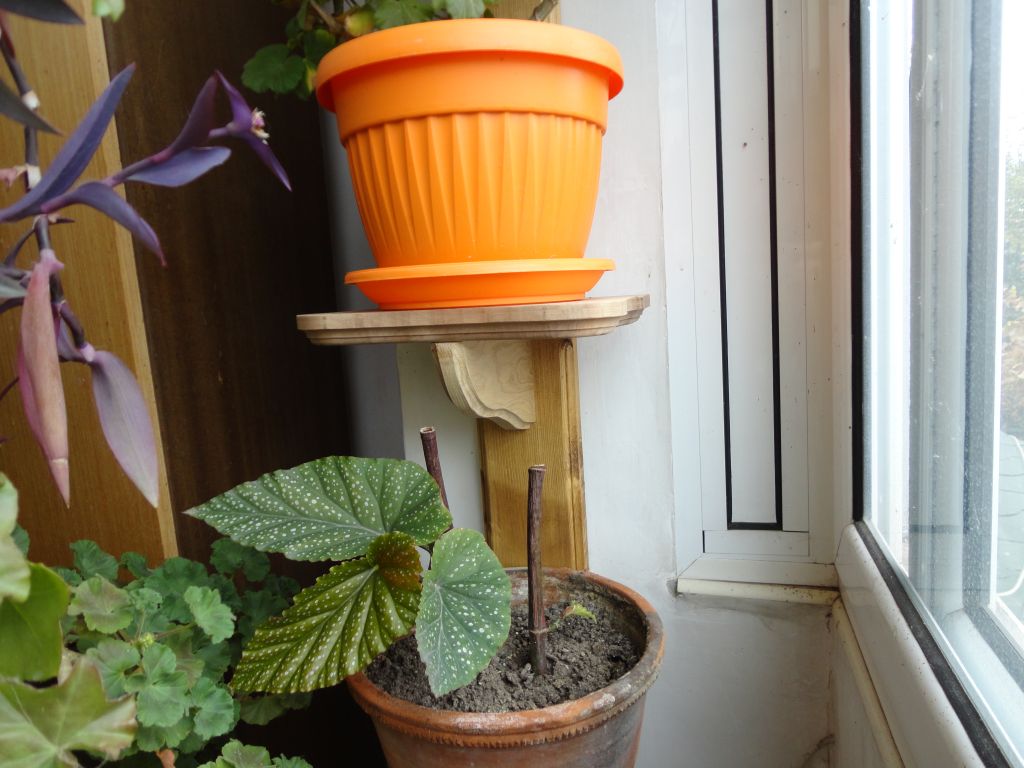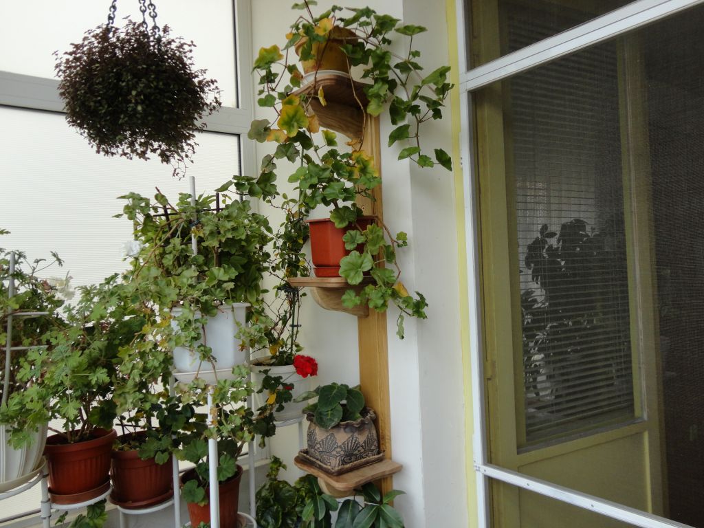 Цветарниците и поставката за рутера.Направени са от отпадъчни материали, останали от тук, от там.