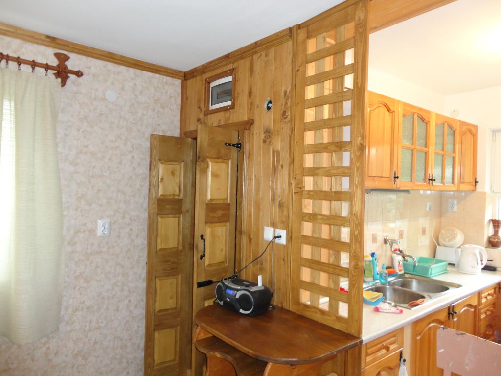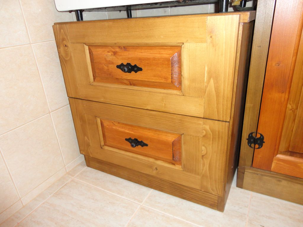 Малко монтажи от неделя на неща ,които направих последните месец, два.Това е на вилата, май трябваще в темата да ги пусна, ама и тука става.Сложих долапа за печката, монтирах корниза и решетката.Пръчката на корниза е фабрична,конзолите аз ги правих, понеже фабричните хич не ми харесват.Долапа е стандартен, с две чекмеджета.Идеята беше с две вратички и когато им направих таблите и ги сглобих, жената рече, че не ще врати а чекмеджета :prayer: .Та се наложи да удължавам от двете страни лицата да паснат на размер, няма да ги хвърлям, я :rock: .