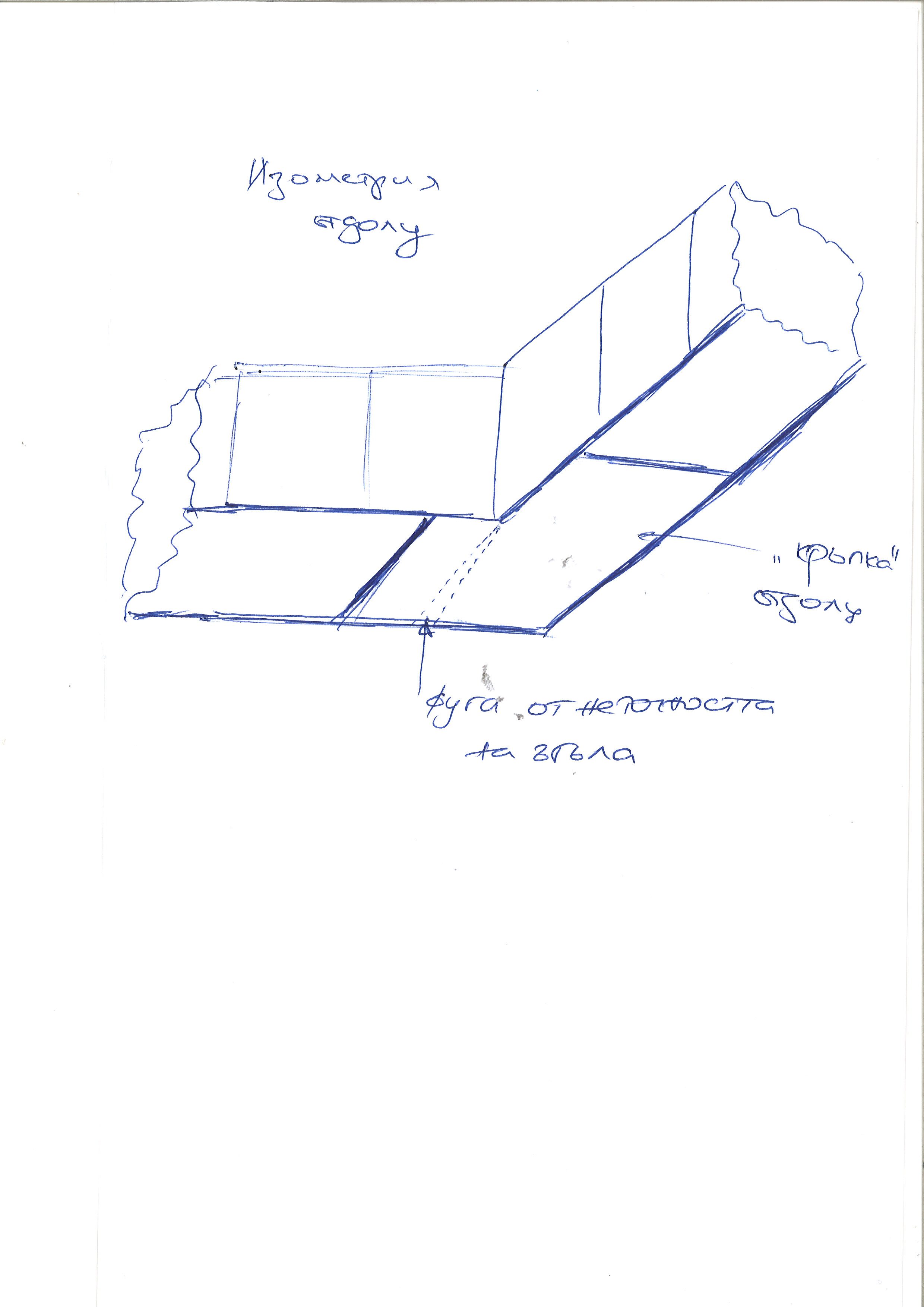 Пак да повдигна питането за монтажа на елементите в антрето, че искам да паснат по двете страни и в ъгъла. И тъй като ъгълът не е точно 90 градуса (вече съм сигурен), как да компенсирам. Мисля си за някакво декоративно парче, изрязано по мярка от място, което да се лепне отдолу (съответно ще му бъде оставено място) за да скрие неточността на ъгъла.Но ... как ще отрежа парче ПДЧ с точност до мм, че и Г -образно, че и не под прав ъгъл ...Дал съм на схемите (малко пресилено е разминаването от 90 градуса) какво имам предвид.