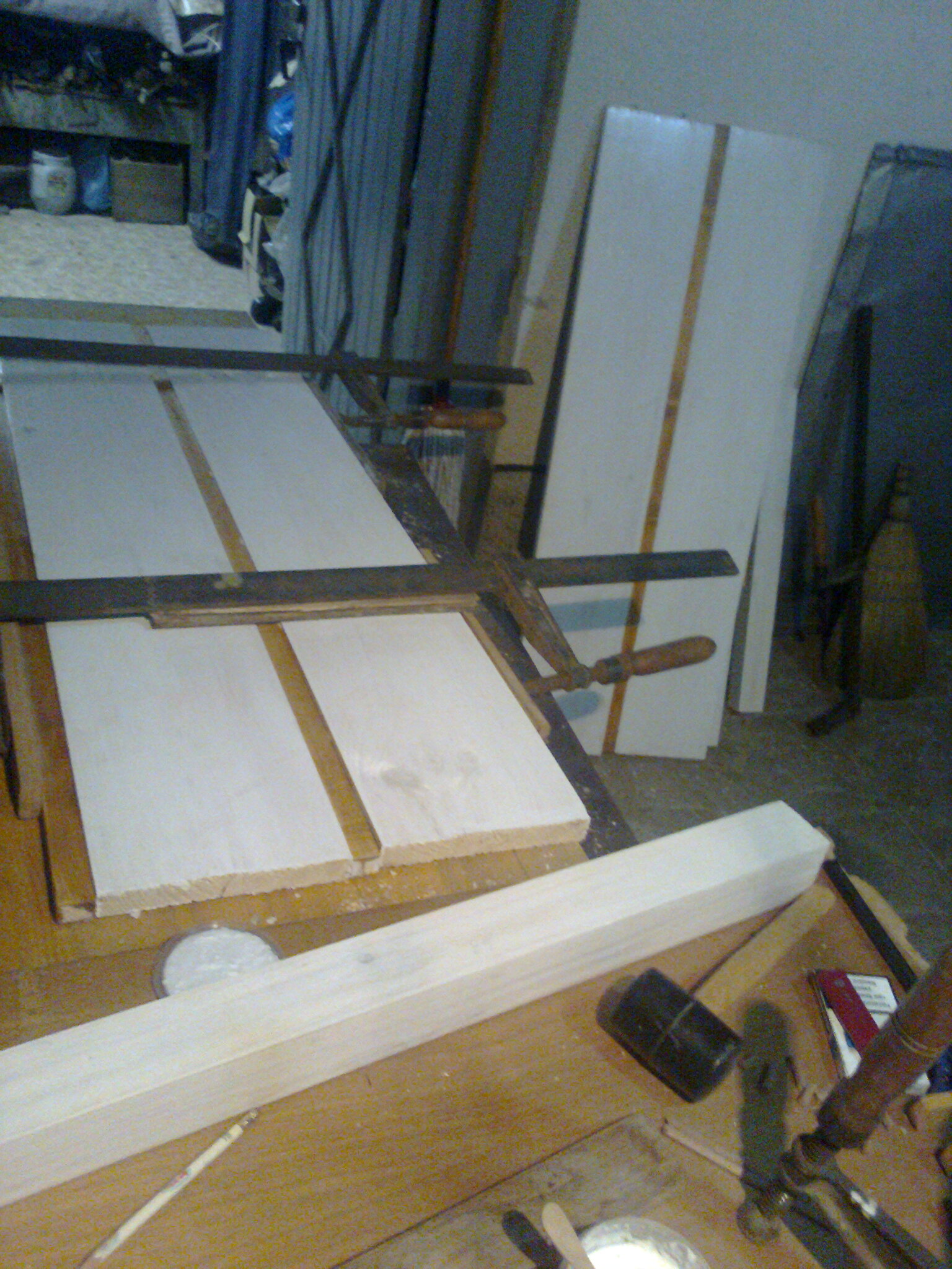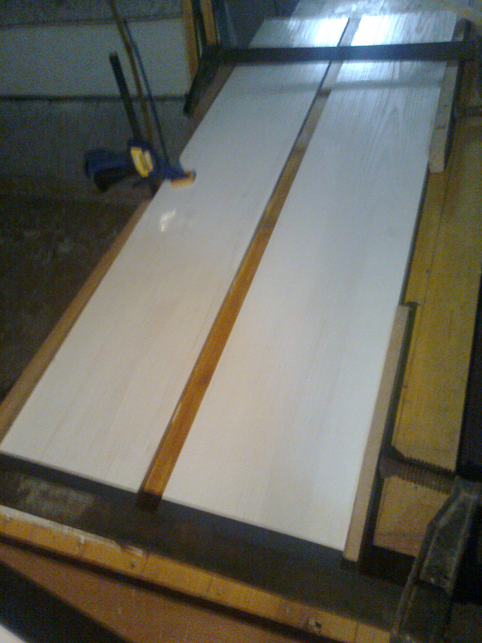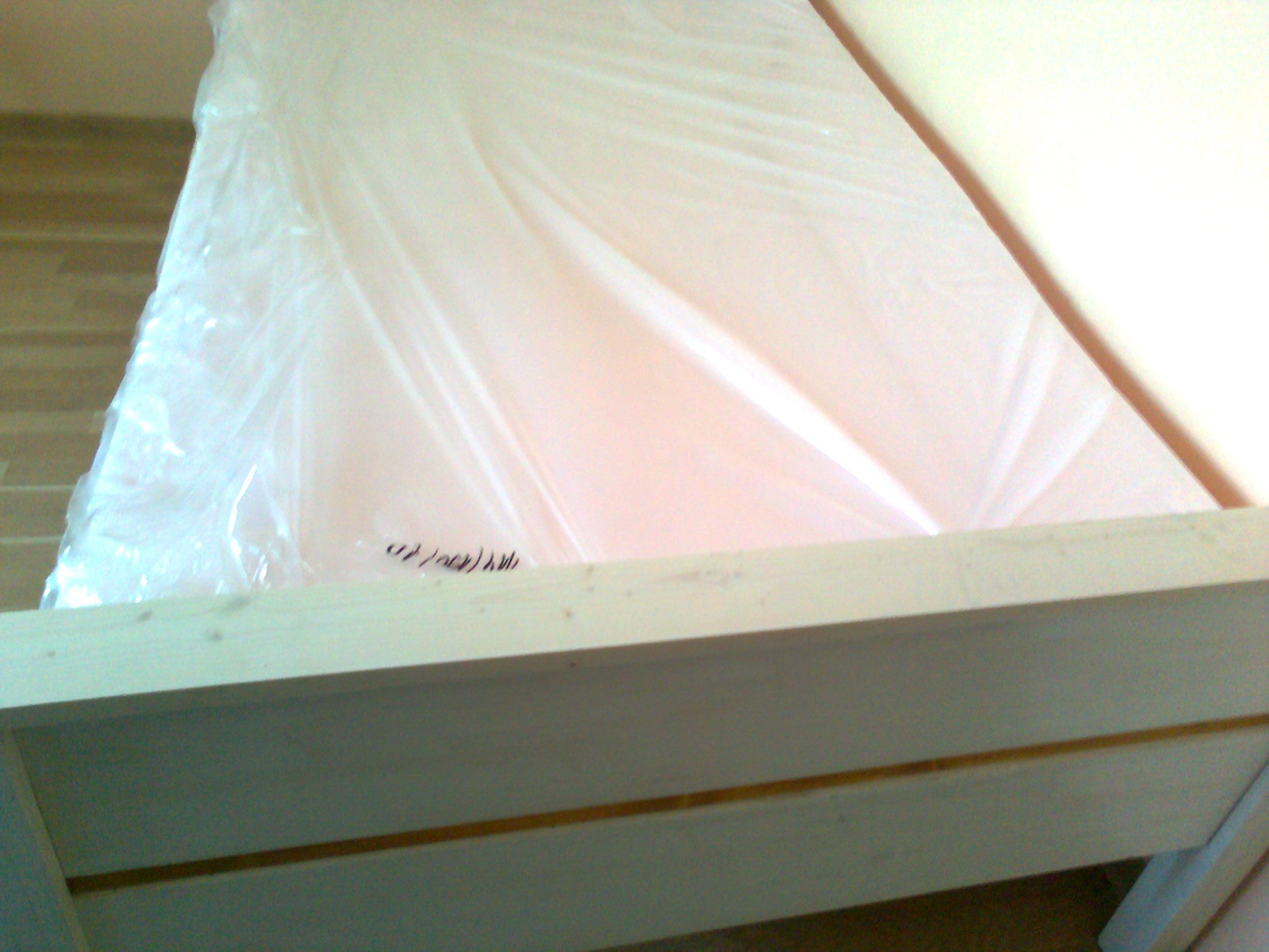 3. Купих фазер 48"х48" от който ми разкроиха в магазина 4 парчета - за три страни и дъно. Две страни и дъно са вече сложени. Поради това че фазера беше бял от едната страна, та боядисах бяла горницата (подпряна отзад).