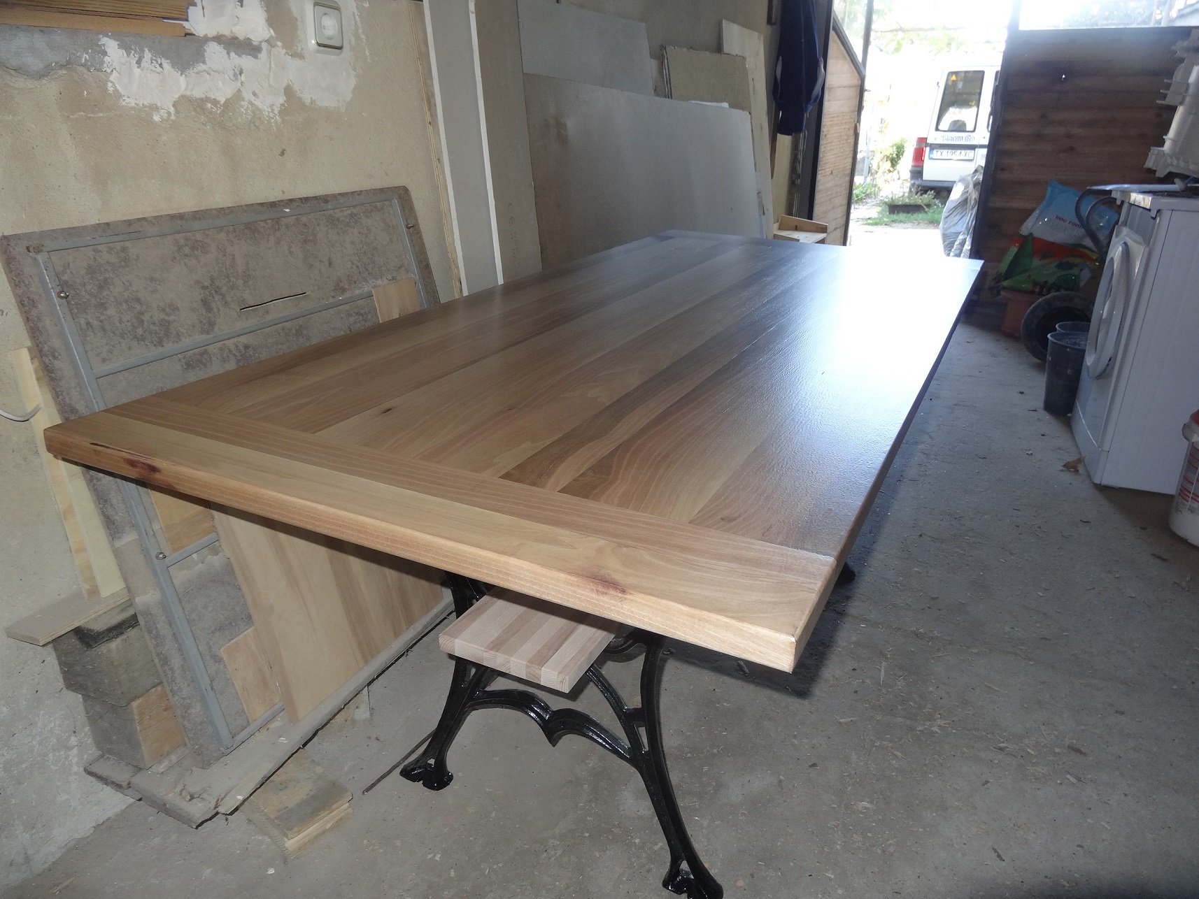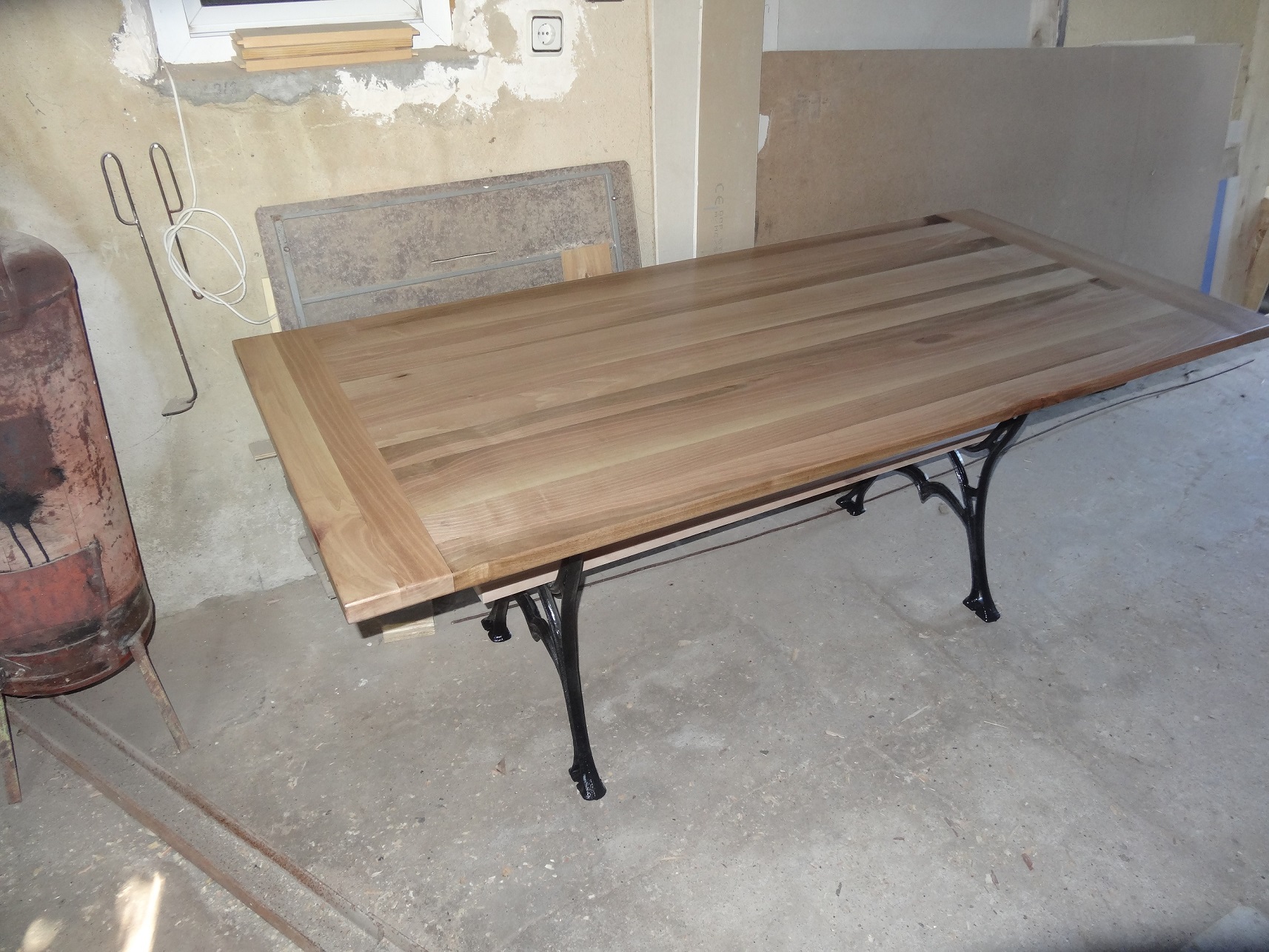 Малко да се похваля и аз. Това лято доста куцаше от към дърводелски изпълнения, но малко други грижи. Най-накрая успях да завърша плота за една орехова маса. Ето резултата след 3 нанасяния лак(остават още 2, но не се стърпях) :