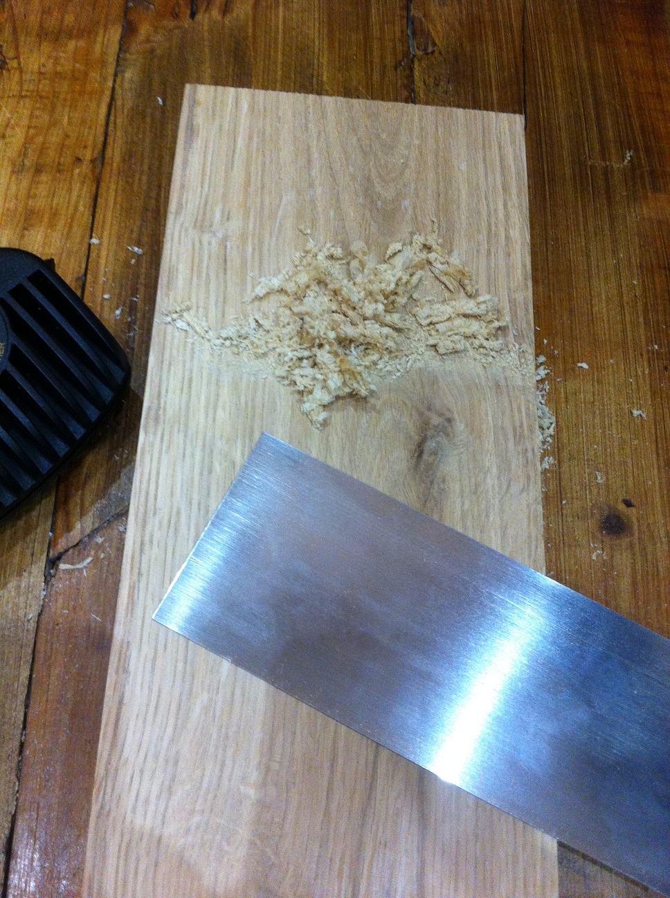 Бързо дойде - ето резултата върху дъб, не е необходимо да го коментирам :mrgreen: Мястото на шкурката бързо изстина.