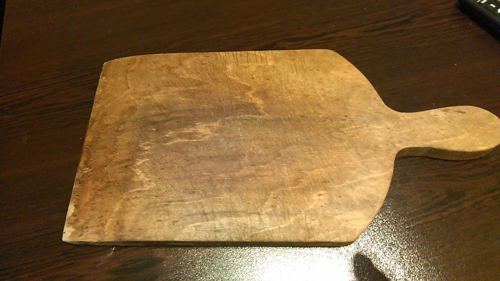 В къщи след като нарежа сланинка на дъскта и хапнем сланинката обилно полята я с винце, я с ракийка я измиваме (дъската) с мека гъба - с препарат за съдове и огромно количество вода (по възможност гореща или поне топла). Тази от снимката според мен е орехова. Годините и са над 30, като преди 1,5 година я опресних на щрайхмуса с по една стружка от всяка страна.
