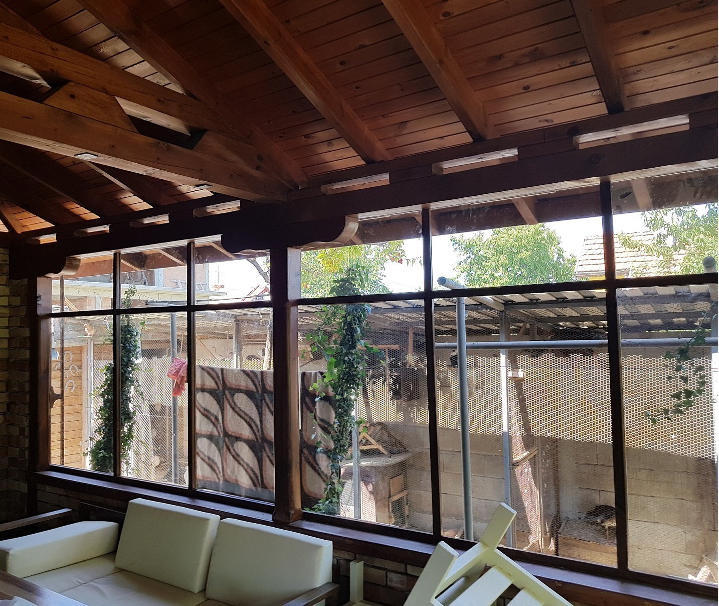 И аз да се похваля малко. Това ми е от началото на месеца Съботно/Неделния труд. Правя едно остъкление за Навеса на Вилата. Половината е готово, на другата полвина ми остана да накова летвите и 2 финални слоя лак. :