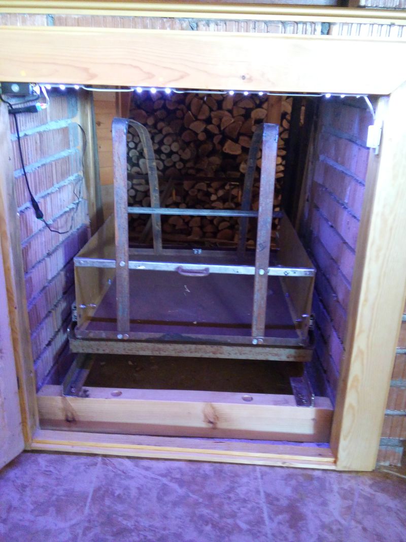 -количка за вкарване на дървата през стената в стаята