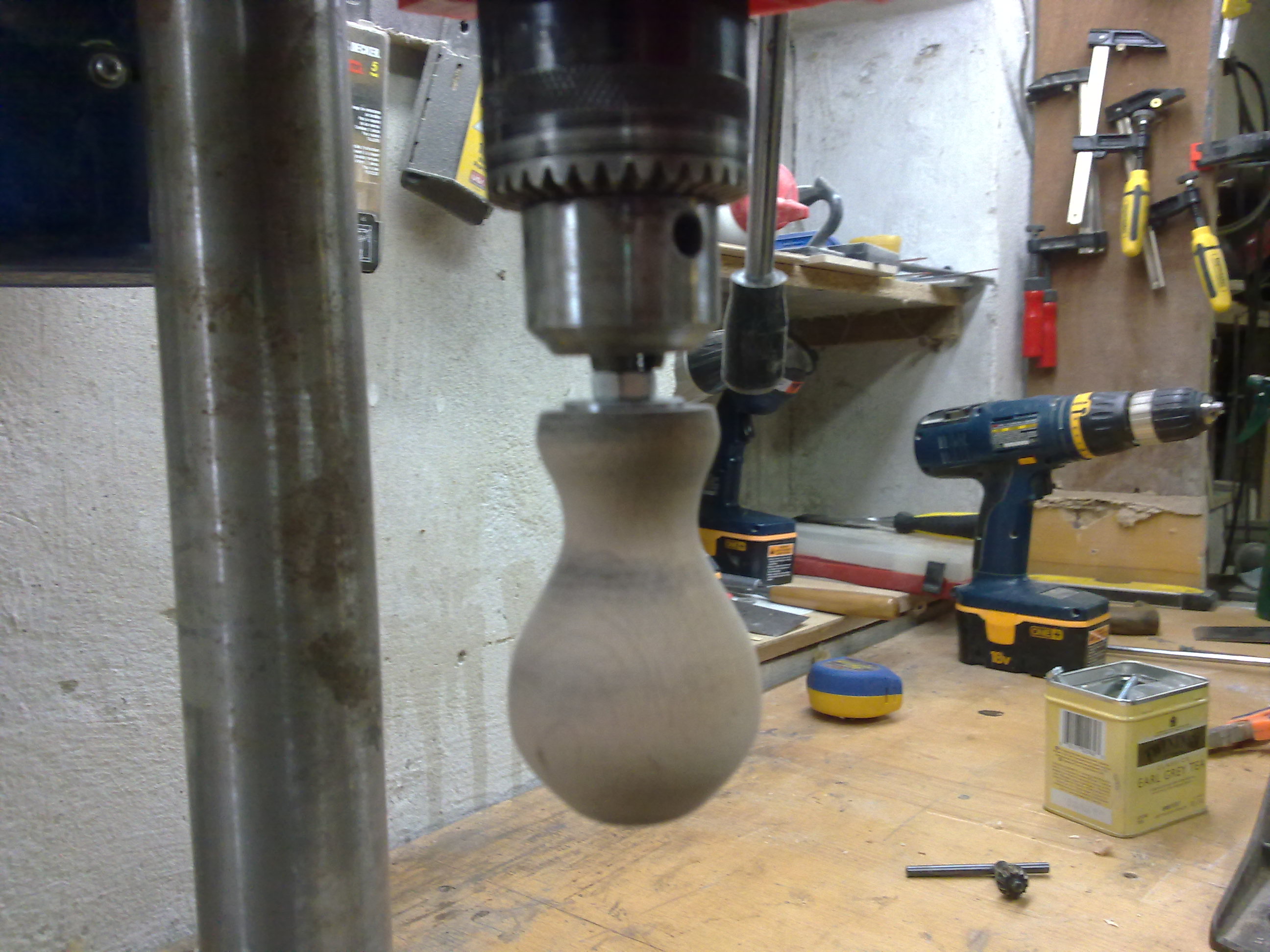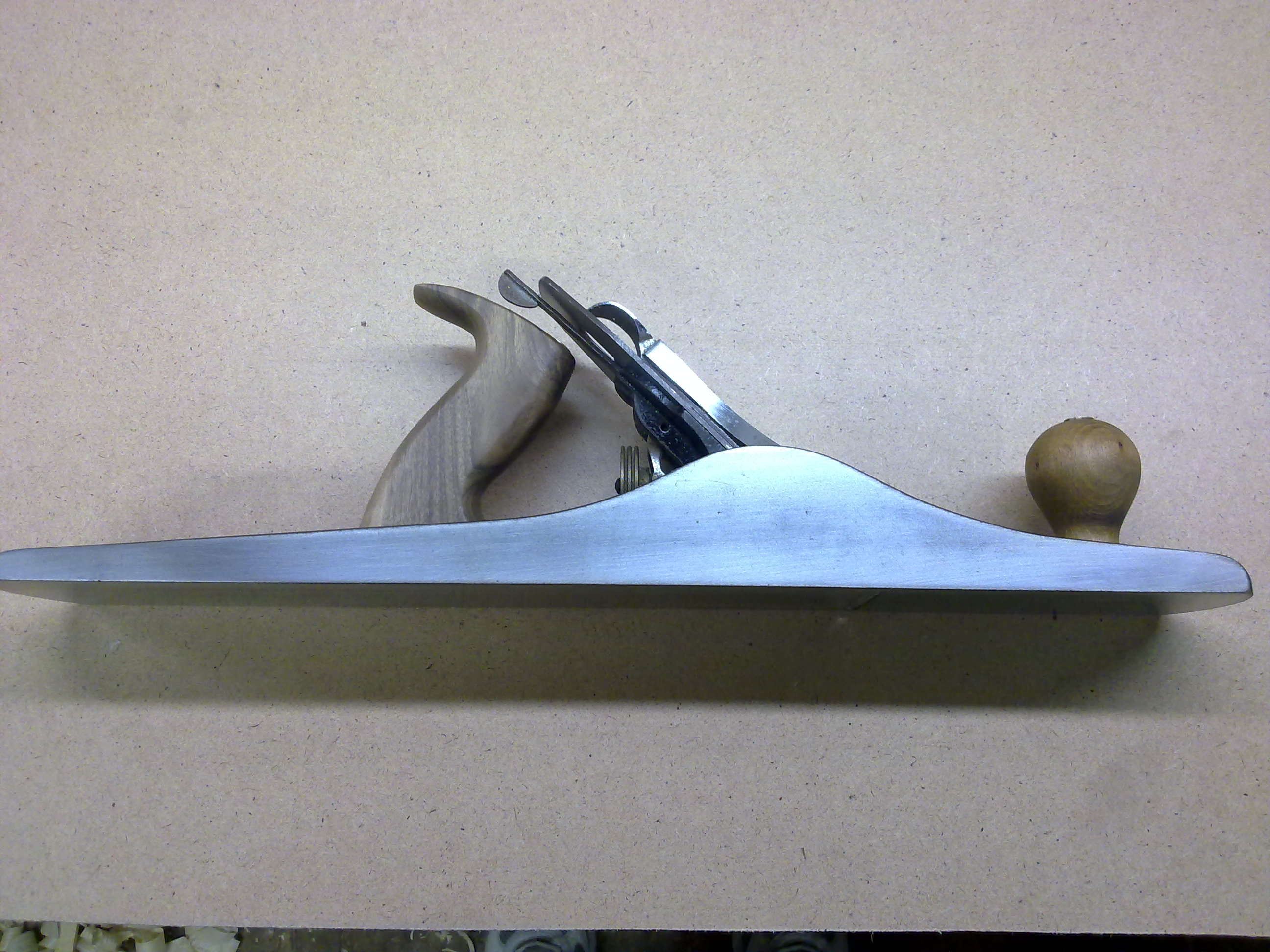 Купих го без дръжка. Беше поръждясало, но в горе-долу добра форма. Направих задната дръжка от орех, а предната просто я престъргах с шкурка на колонната бормашина. После наостих и настроих и сега е готово за експлоатация.