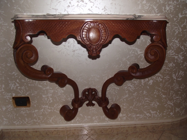 Последно правих едни рафтове и там правих подобно нещо само ,че след бялата водна боя правих петна с прозрачен восък,след това нансях друг слой/цвят боя отгоре и там където бяха восъчните петна останаха светли петна,но техниката е дълга,чакане да съхне восъка около ден ,после другата боя съхне,после с шпатулка стържеш петната там новият слой боя не се държи и пада ,след което с метална вата финна го прекарвах цялото с цел да станат плавни петната и накрая патина тъмна и тнт. Ала рафтовете бяха като цяло в друга гама ,тъмни и можех да си позволявам лек ефект на състаряване.
