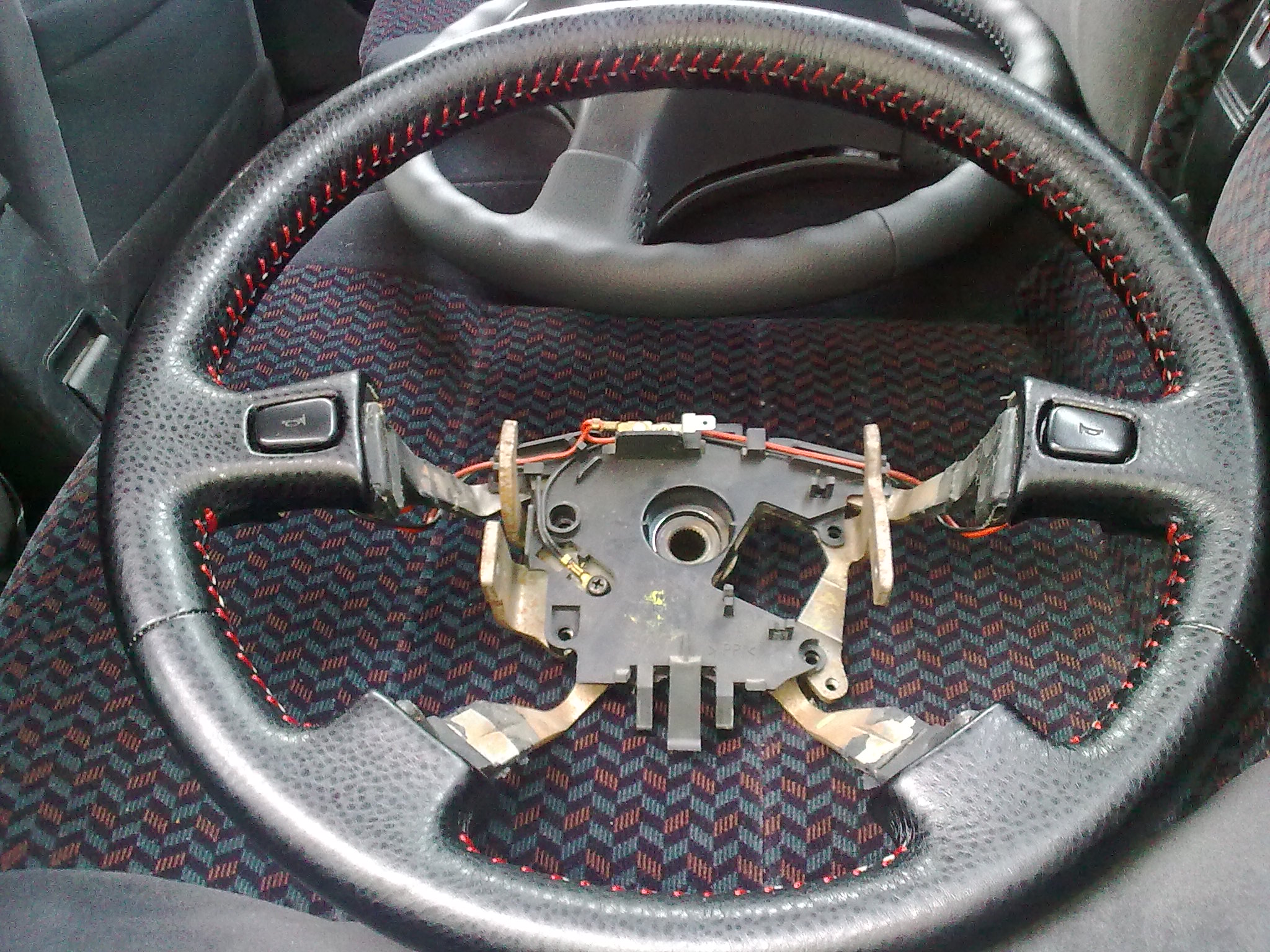 Това няма много общо, но иначе Браво! Добре се справяш. Идеята е, че когато нямаш стабилна основа колкото и да претапицираш, волана се пързаля, усуква и не може да се ползва стабилно и сигурно. Няма управия. Ако искаш да стане както трябва може да си го отлееш и от епоксидна смола. Все скъпи и трудоемки операции.