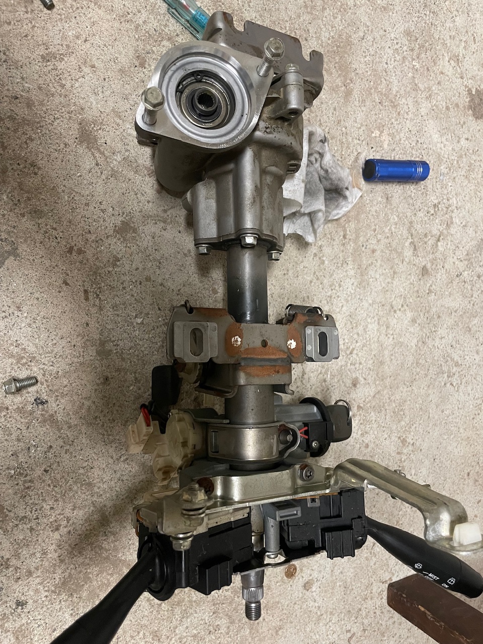 Като гледам 4 и 2 крачета(маса на датчика) са за презапояване. Липсата на хубав контакт с масата също може да блокира рейката. Отделно където се пъхат в датчика за усилието може да се юстират малко буксите. Отделно износени четки или умряла секция на ротора пак може да блокира работата на усилвателя. При завъртане в някоя посока просто излизаш от блокиращата позиция и усилвателя тръгва да работи. Занеси му и рейката, за да я огледа хубаво.