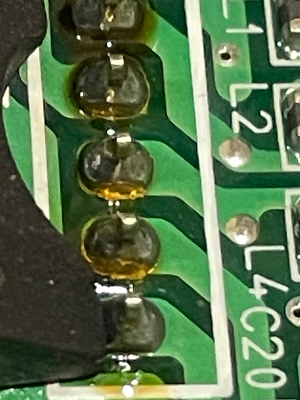 А по снимката въобще не смятам че това е нагоряло. Просто е останал флюс от запояването.