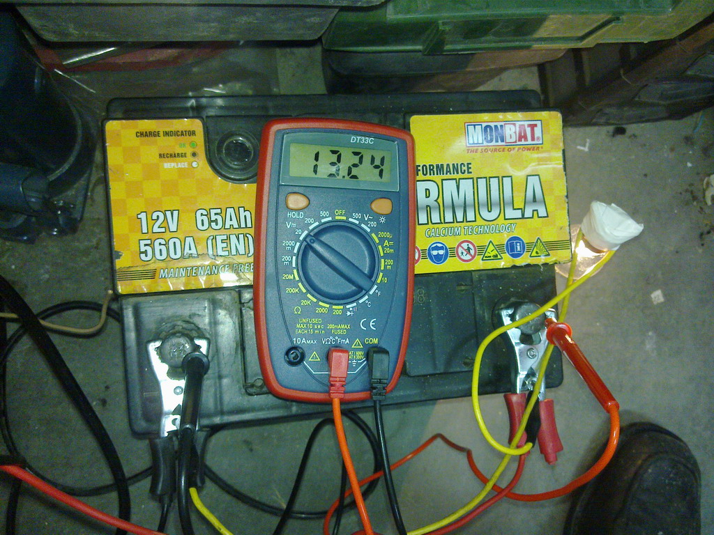 Боцнах на 2 ампера 12 часа и плюс 3 часа на 5 ампера и акумулатора има 13,57 волта. Вече работи! :-D Спестих 200-300 кинта за акумулатор. И сега си бръмча